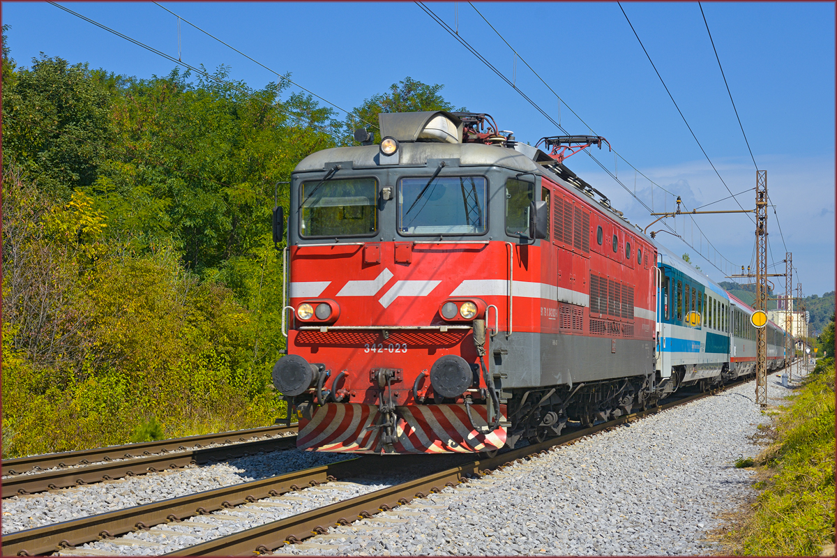 SŽ 342-023 zieht EC151 durch Maribor-Tabor Richtung Ljubljana. /10.9.2020