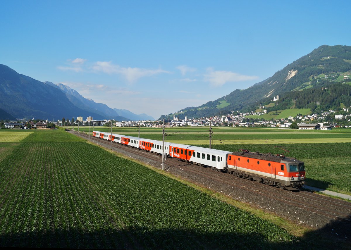1144 084-1 war am 24.06.2020 für die Führung des REX 5317 (Innsbruck Hbf - Kufstein) zuständig, der die letzte verbliebene abendliche Pendlerleistung mit City-Shuttle-Wagen auf der Unterinntalbahn bildet. Bei Schwaz konnte der klassische Nahverkehrszug im Abendlicht abgelichtet werden.