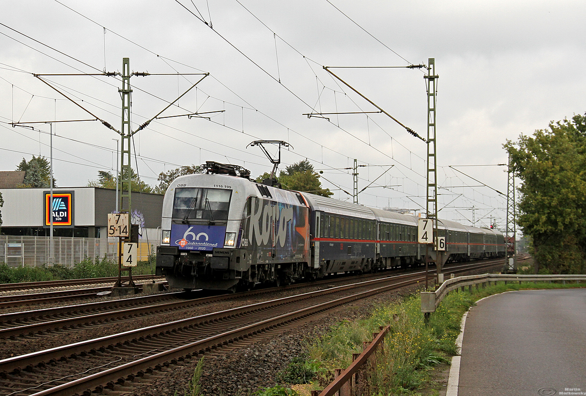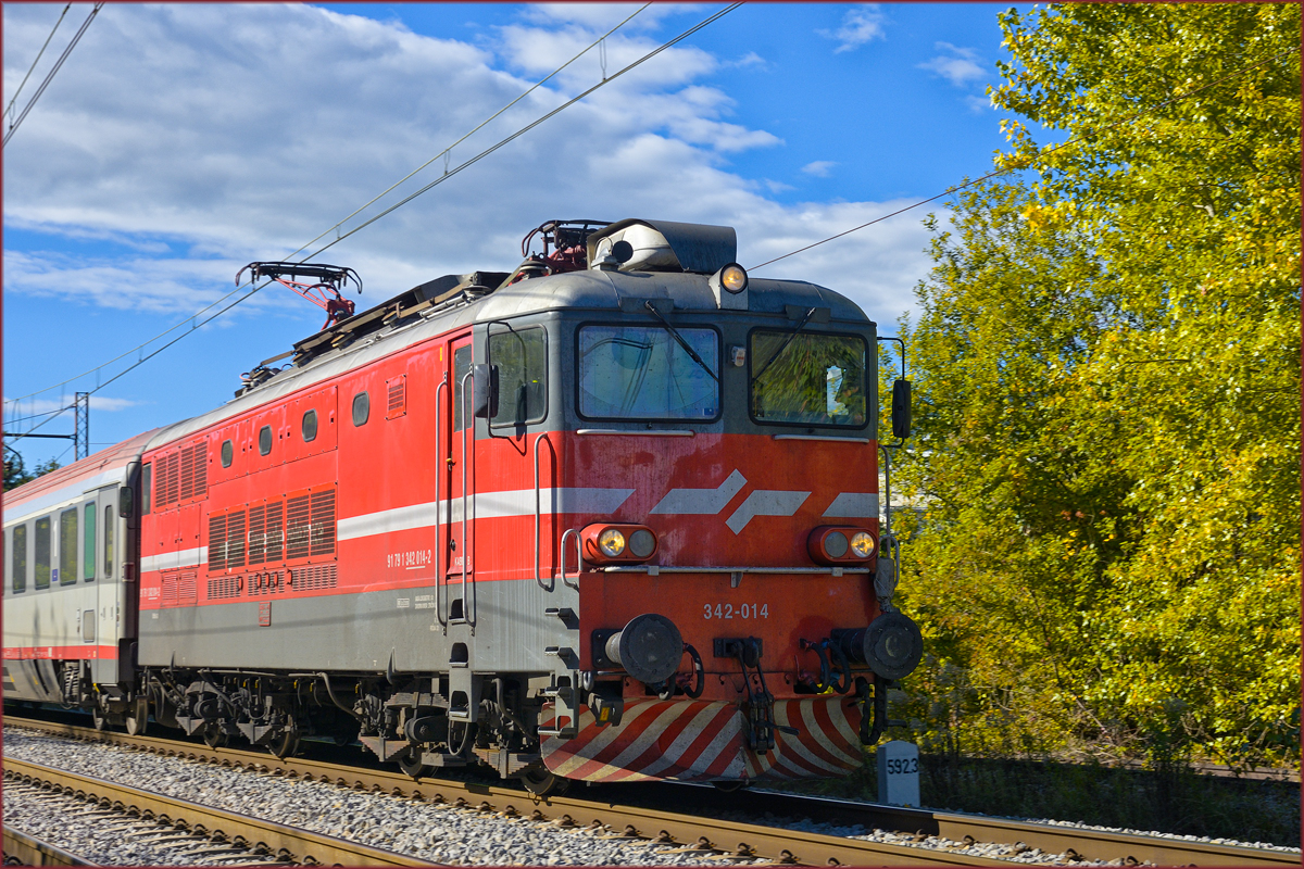 SŽ 342-014 zieht EC158 durch Maribor-Tabor Richtung Wien. /30.9.2020