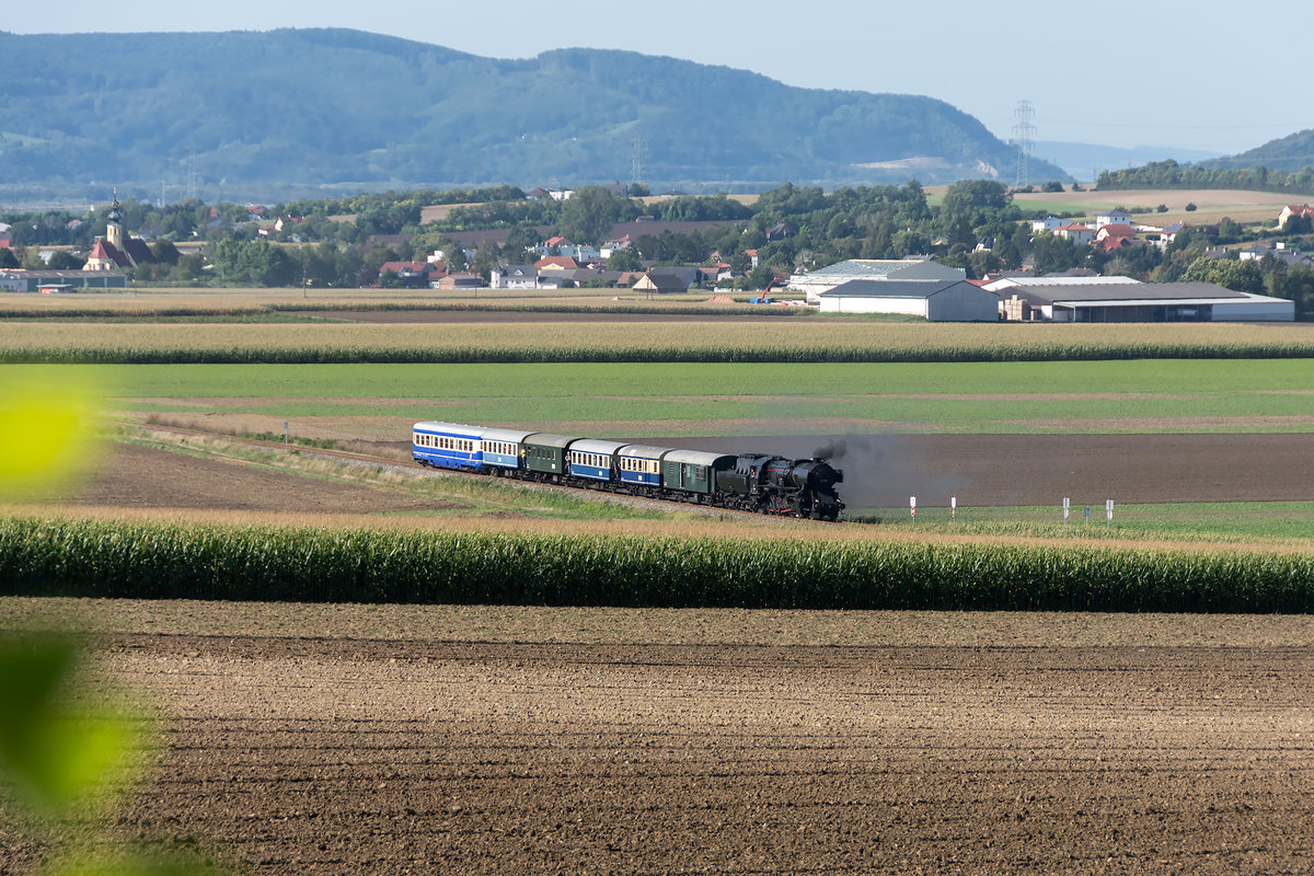 Anlässlich des Dampfeisenbahnromantik- und Regionalbahntag gab es am 20.09.2020 wieder einmal einen Dampfsonderzug auf der Landesbahn zwischen Korneuburg und Ernstbrunn zu bewundern,wie hier zu sehen zwischen Korneuburg und Stetten-Fossilienwelt.