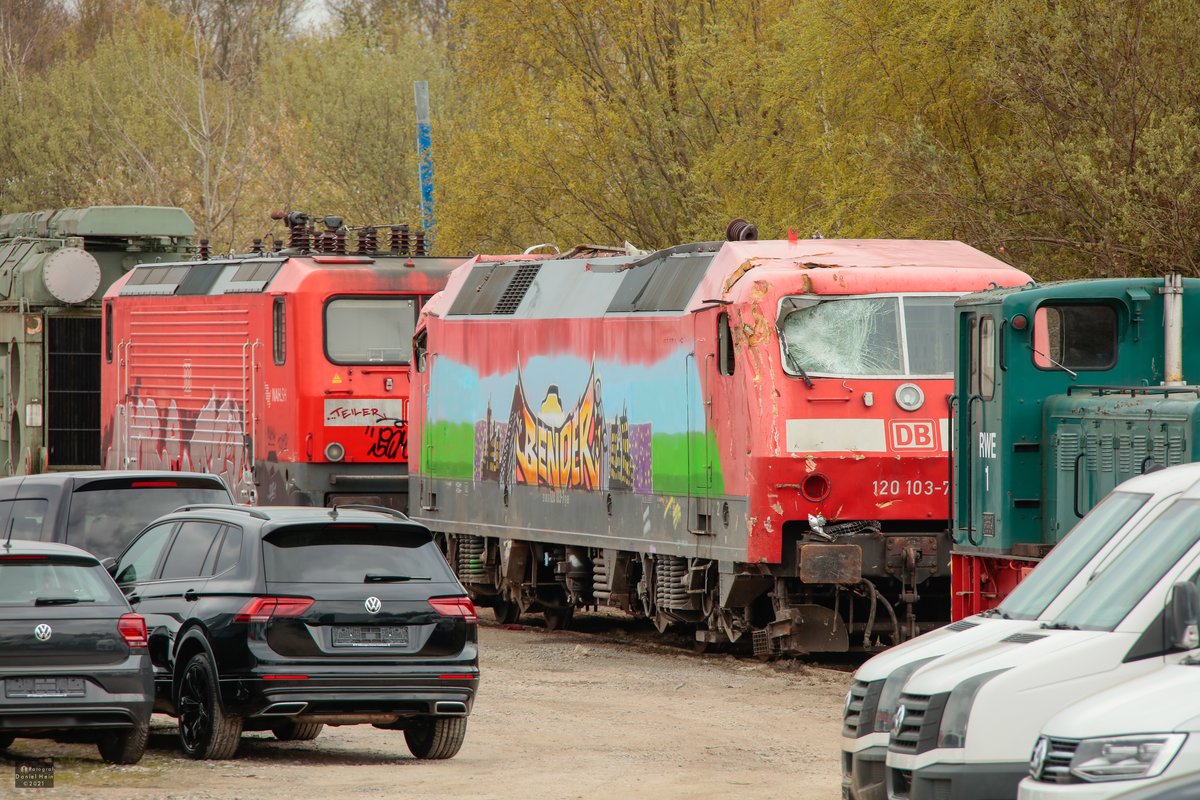 E03 001 DB mit DB 111 001 & DB 140 423-5 in Wuppertal, April 2021.