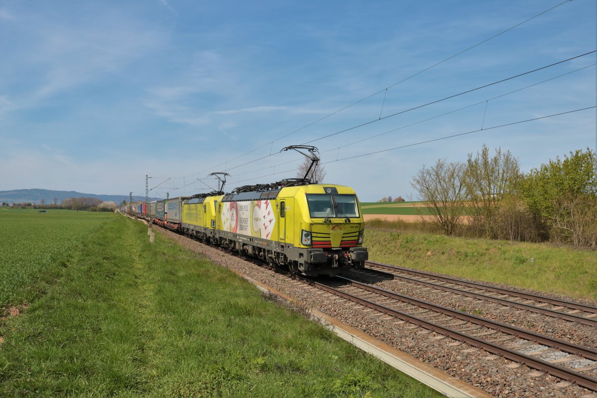 RTB CARGO GmbH, Düren [D] mit der ELL Vectron "193 727" [NVR-Nummer: 91 80 6193 727-5 D-ELOC] und Containerzug am 20.04.21 Bf. Saarmund.