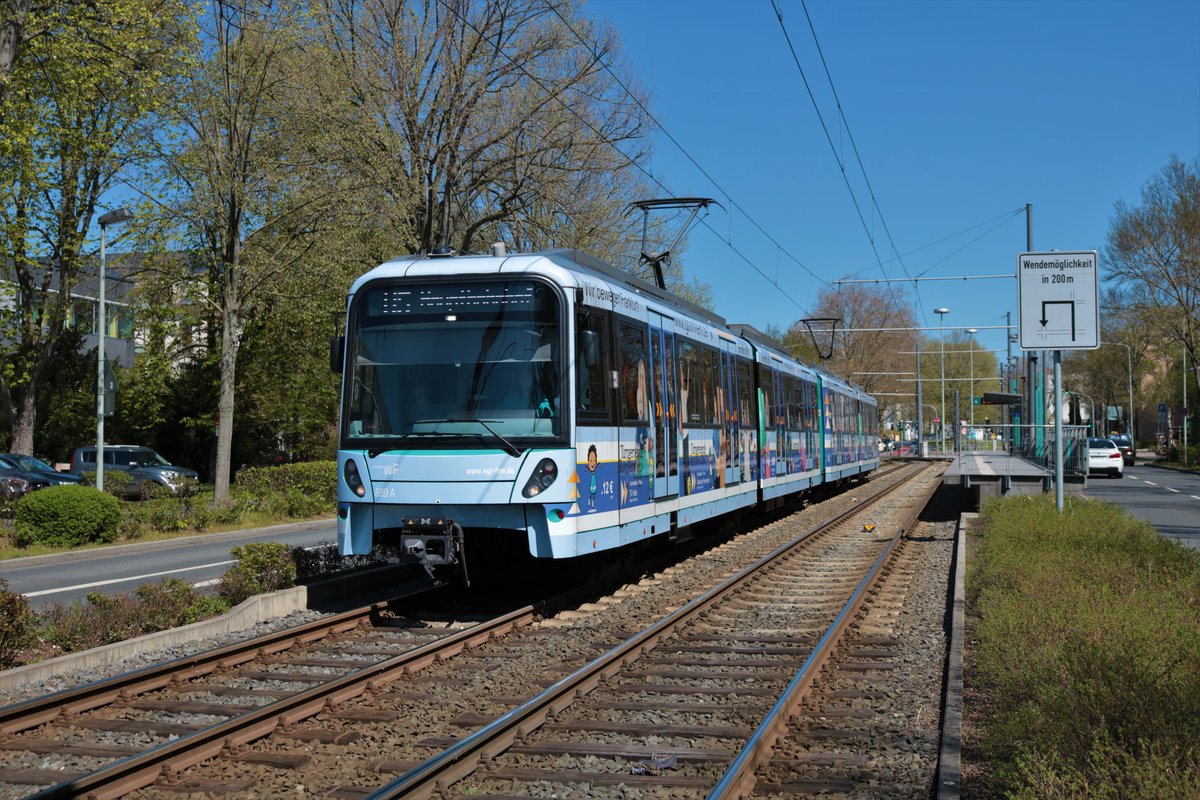 Der Elektrotriebzug ET 6.04 war Mitte März 2021 in Wuppertal-Unterbarmen unterwegs.