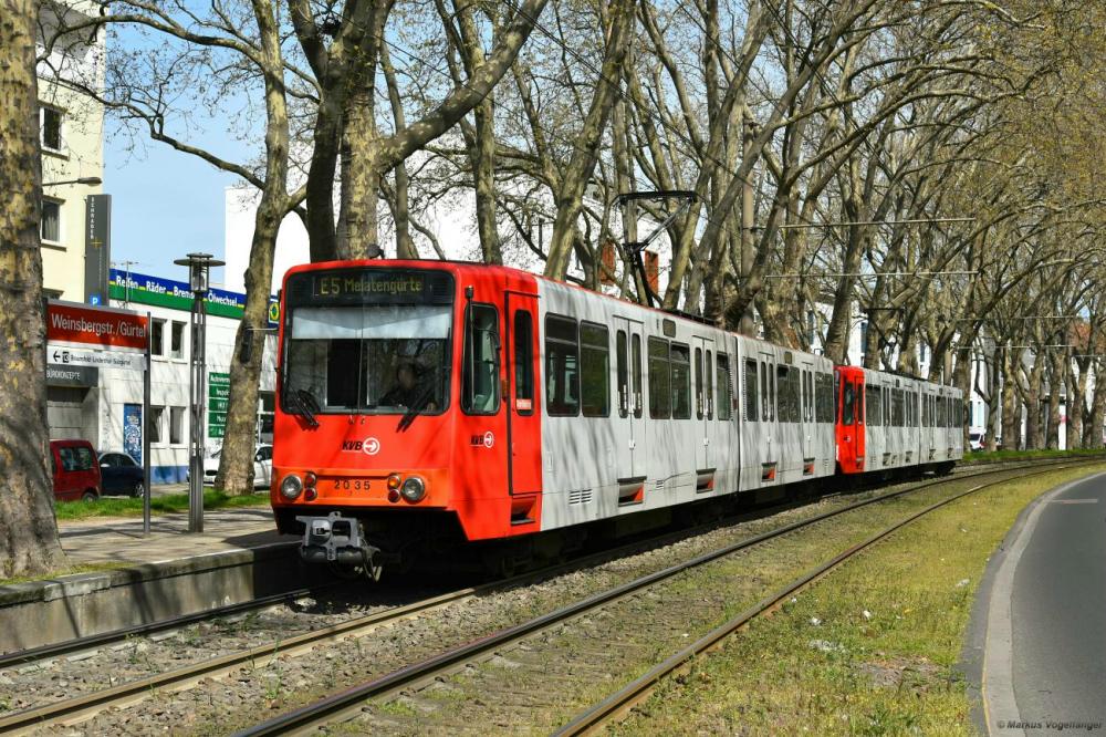 2035 und 2032 als umgeleitete Linie 5 mit dem Fahrtziel "Melatengürtel" in Köln an der Haltestelle Weinsbergstr./Gürtel am 24.04.2021.