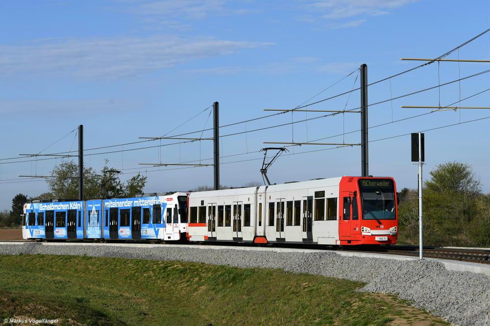 4511 trägt eine neue Vollreklame "NetCologne". Hier in Köln Weiden West am 19.04.2021.