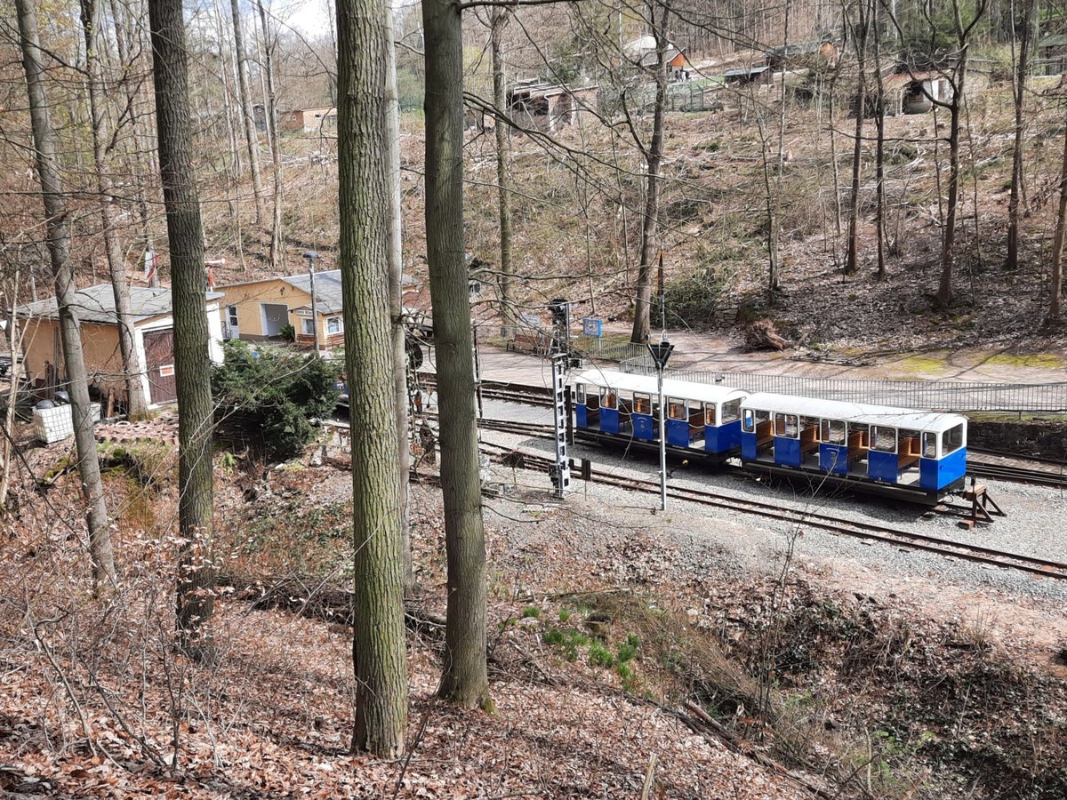 Das Streckenende der Parkeisenbahn Gera am 25.04.2021 nach dem Tunnel und Außerhalb des Waldzoos. Die Stelle wurde als Verlademöglichkeit genutzt.