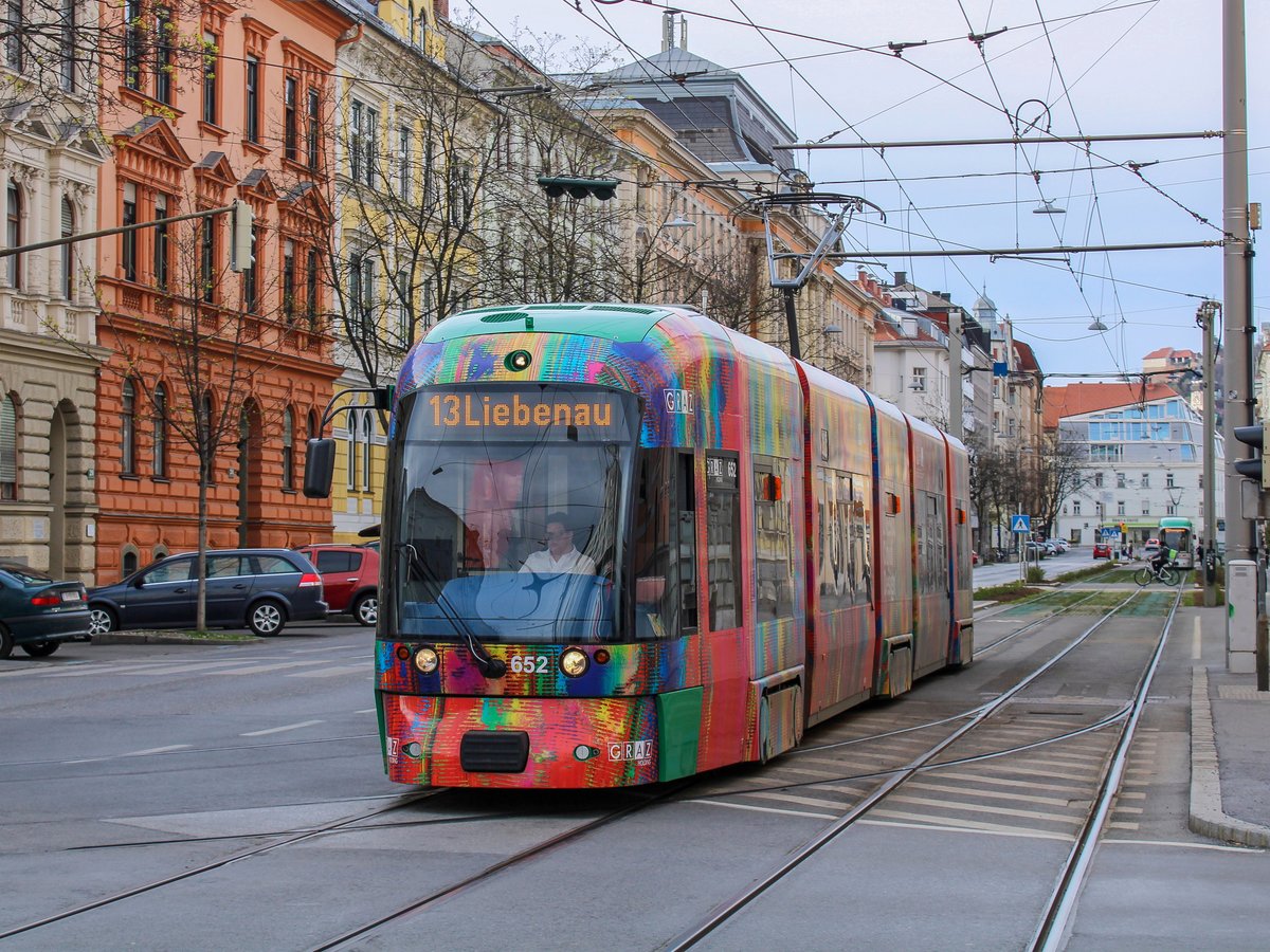 Graz. Variobahn 243 konnte ich am 06.04.2021 als Linie 4 bei der Steyrergasse ablichten.