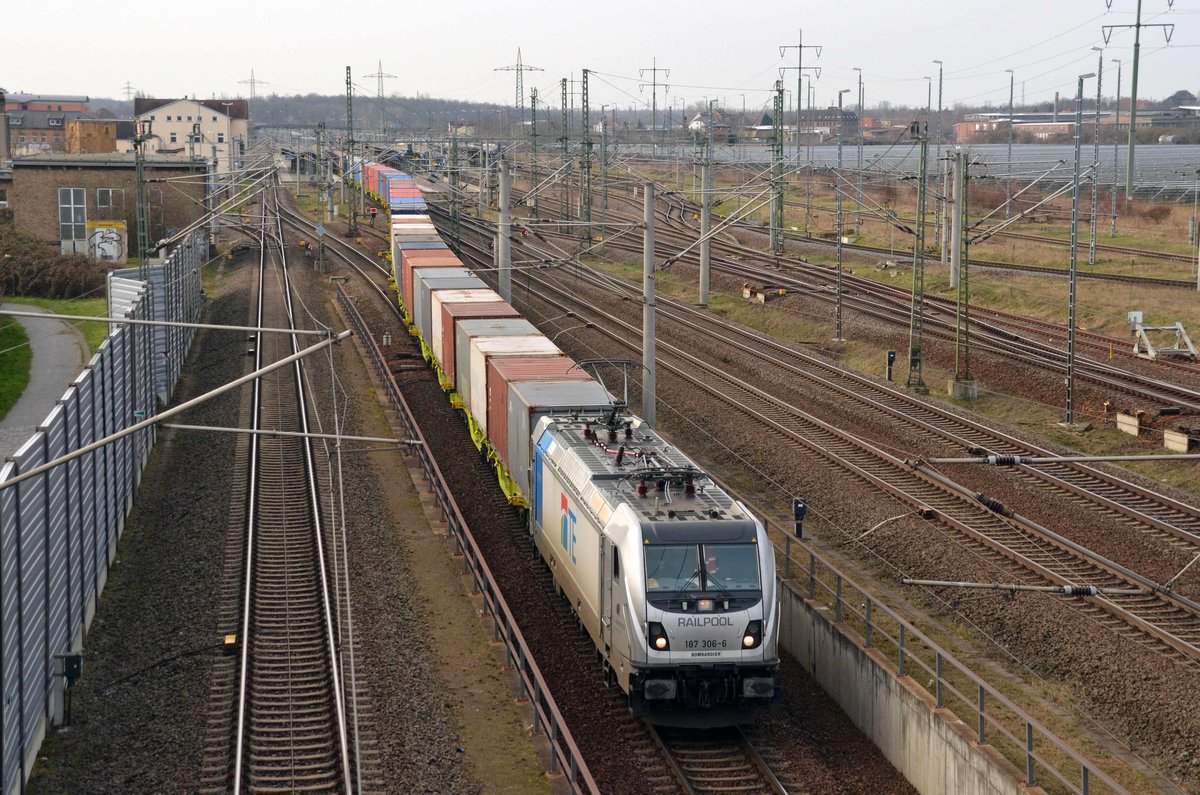 PKP CARGO S.A., Warszawa [PL] mit  EU46-511  [NVR-Nummer: 91 51 5370 023-1 PL-PKPC] und Containerzug am 06.04.21 Durchfahrt Bf. Berlin Hohenschönhausen Richtung Norden.