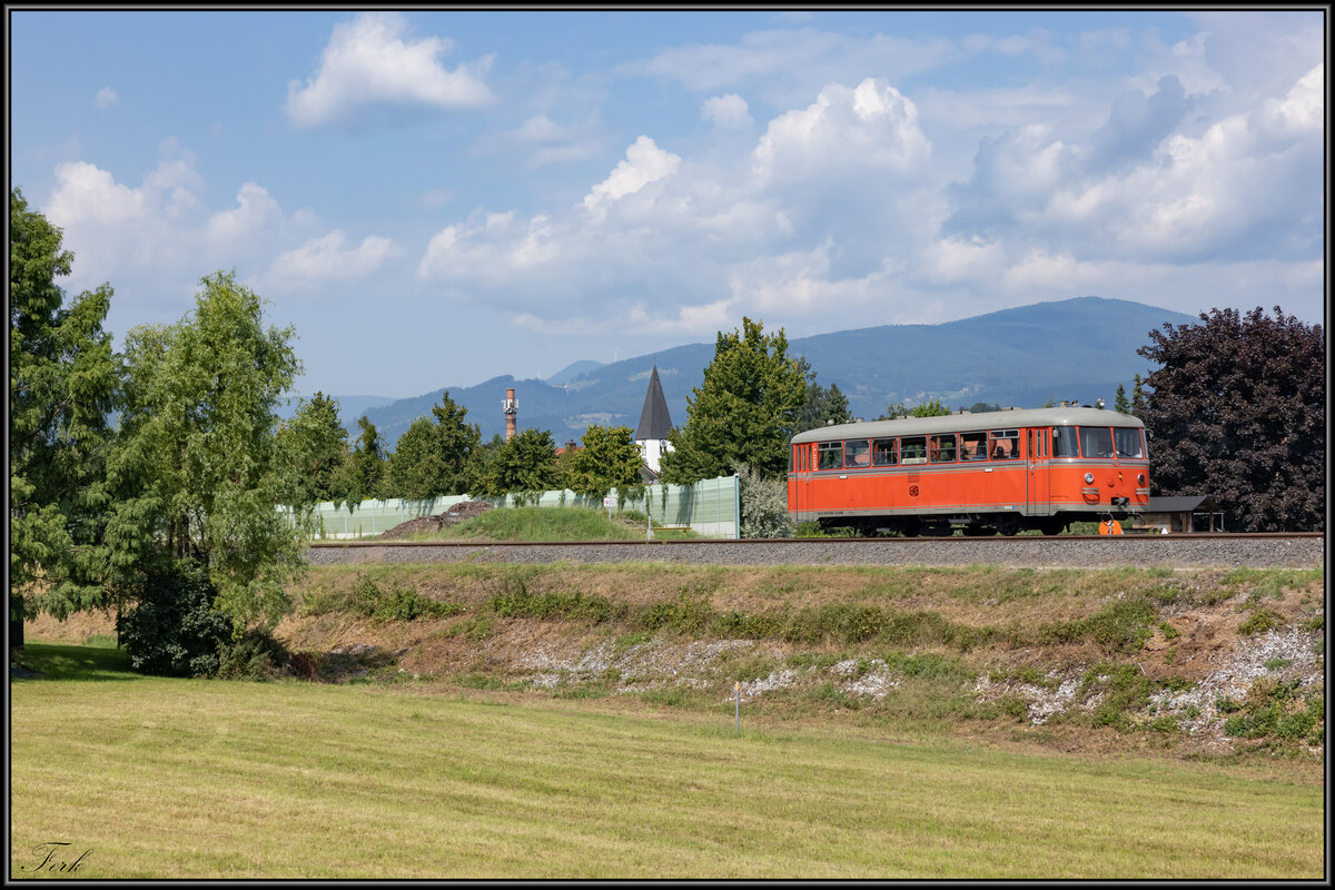 Der Rote Blitz schiesst aus Köflach in den Bahnhof Lieboch hinein ,...