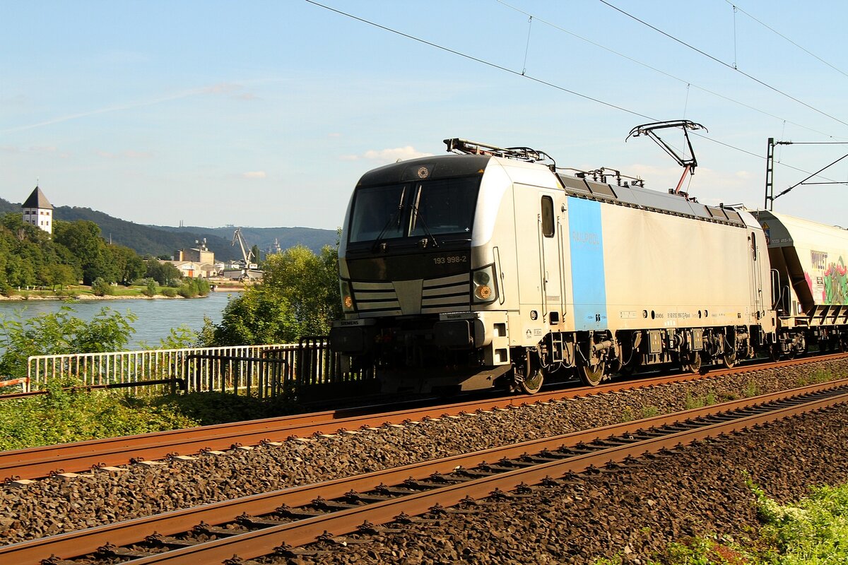 193 998 von Railpool uf der linken Rheinseite unterhalb von Stolzenfels am 25.08.2021.