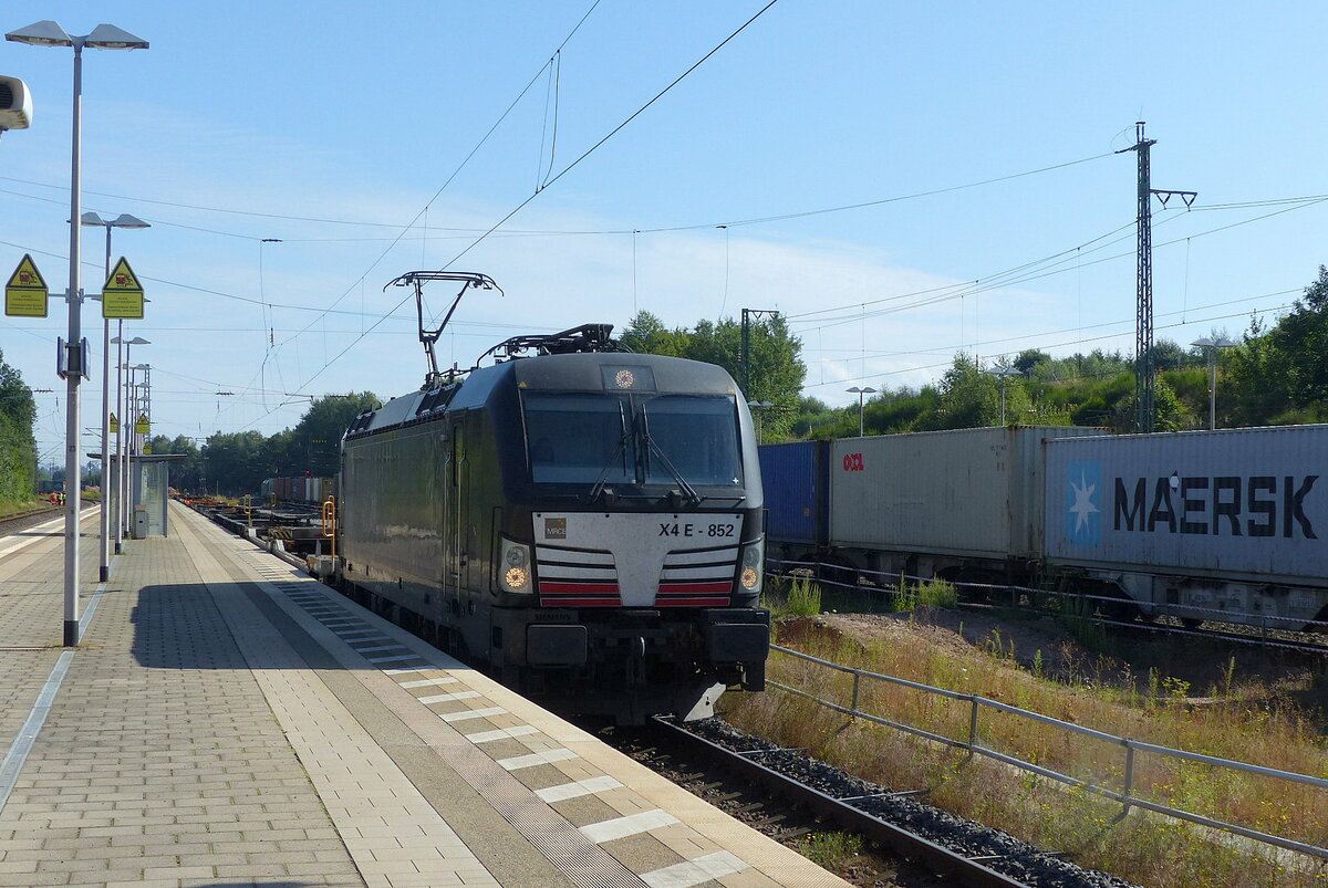 Für das Stahlwerk in Georgsmarienhütte besteht zwischen dem Hafen Osnabrück und dem Hüttenwerk ein reger Pendelverkehr, der der Versorgung mit Schrott dient. Die beladenen Züge werden derzeit von einer Class 66 vom Hafen via Hasbergen, wo umgespannt werden muss, nach Georgsmarienhütte gebracht. Am 25.08.2021 war um 9.50 Uhr ein Leerzug mit Beacon 653-07 auf der Rollbahn zwischen Hasbergen und Osnabrück zum dortigen Hafen unterwegs.