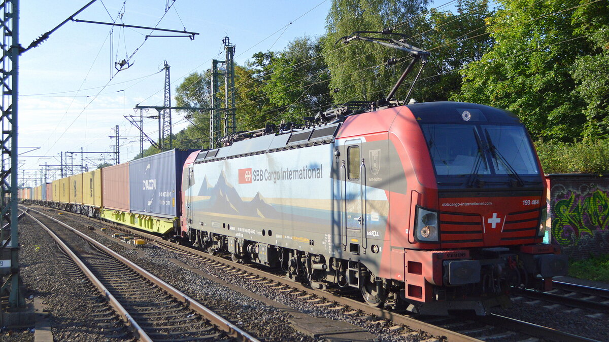 SBB Cargo International AG, Olten [CH] mit  193 464  [Name: Arth-Goldau][NVR-Nummer: 91 80 6193 464-5 D-SIEAG] und Containerzug auf dem Weg zum Hamburger Hafen am 25.08.21 Durchfahrt BF. Hamburg-Harburg.