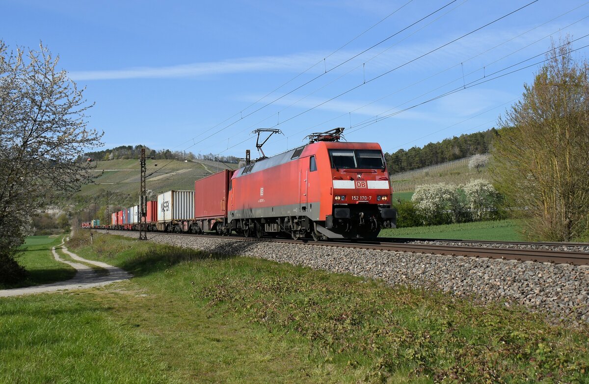 Mit einem Containerzug aus Richtung Veitshöchheim kommt 193 850 durch Thüngersheim gefahren. 24.8.2021