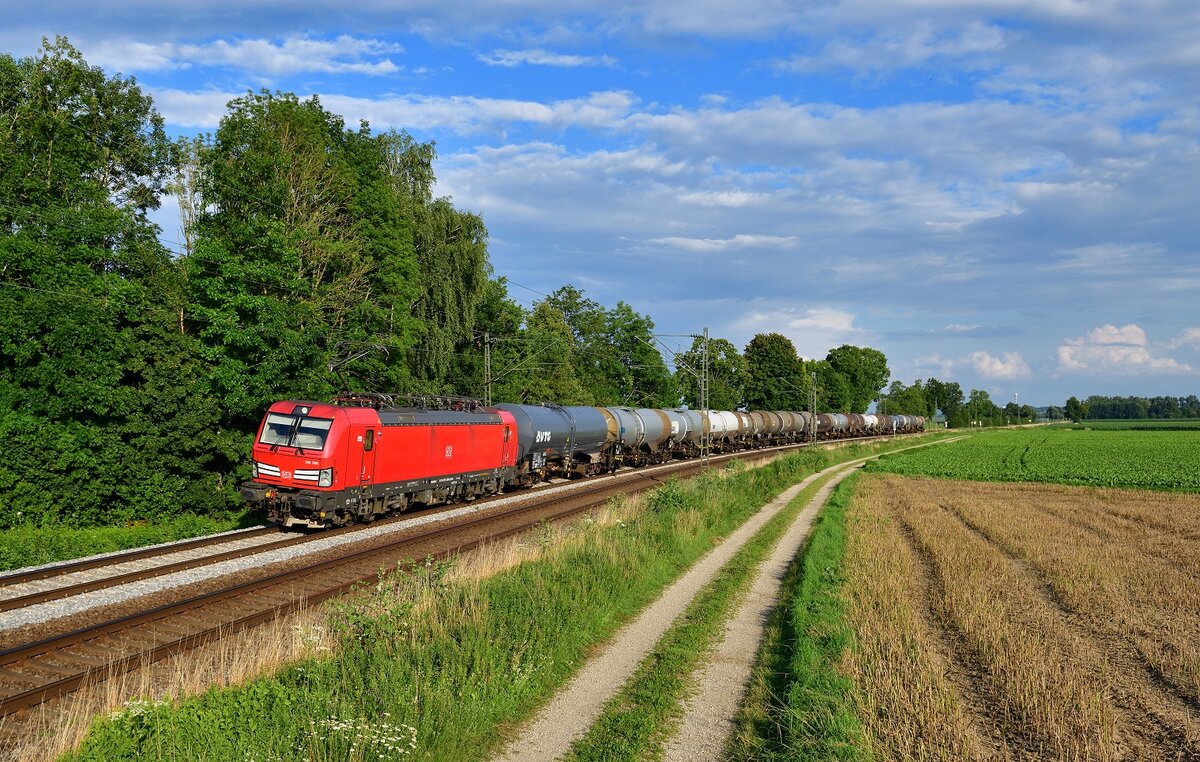 193 386 mit einem Kesselzug am 19.07.2021 bei Langenisarhofen.