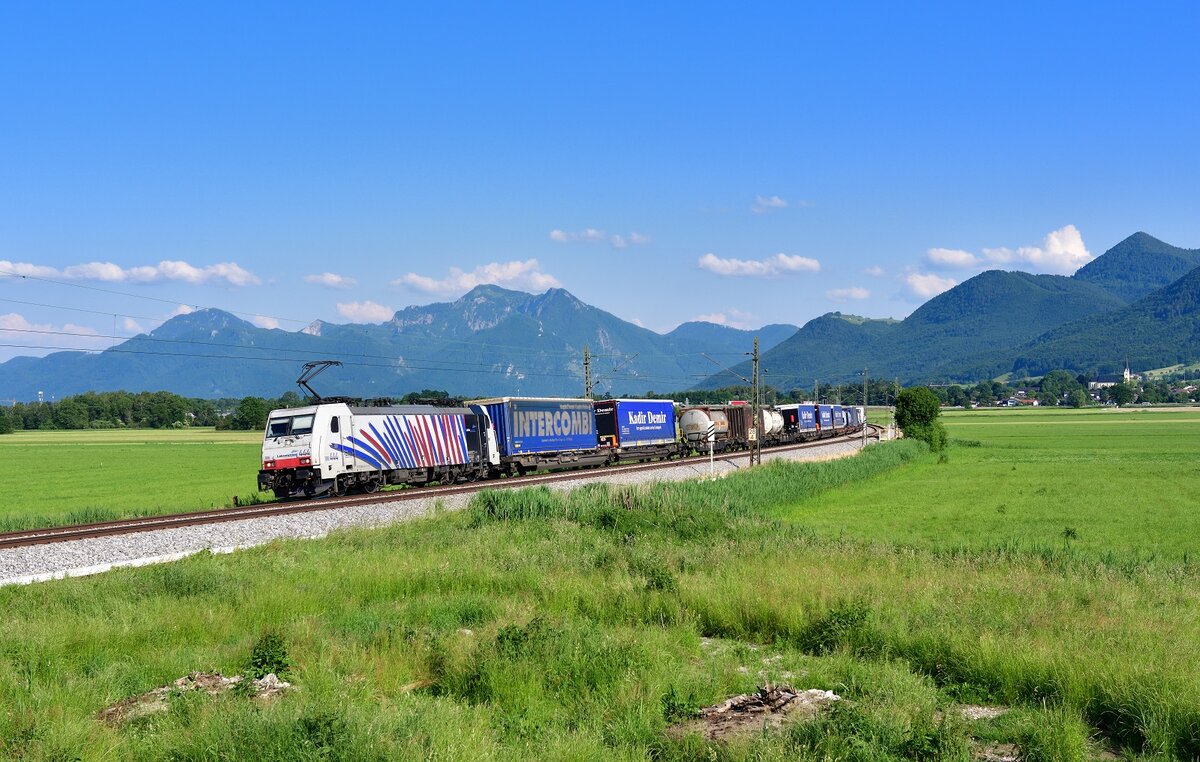 193 736 mit einem Güterzug am 13.06.2021 bei Pöndorf.
