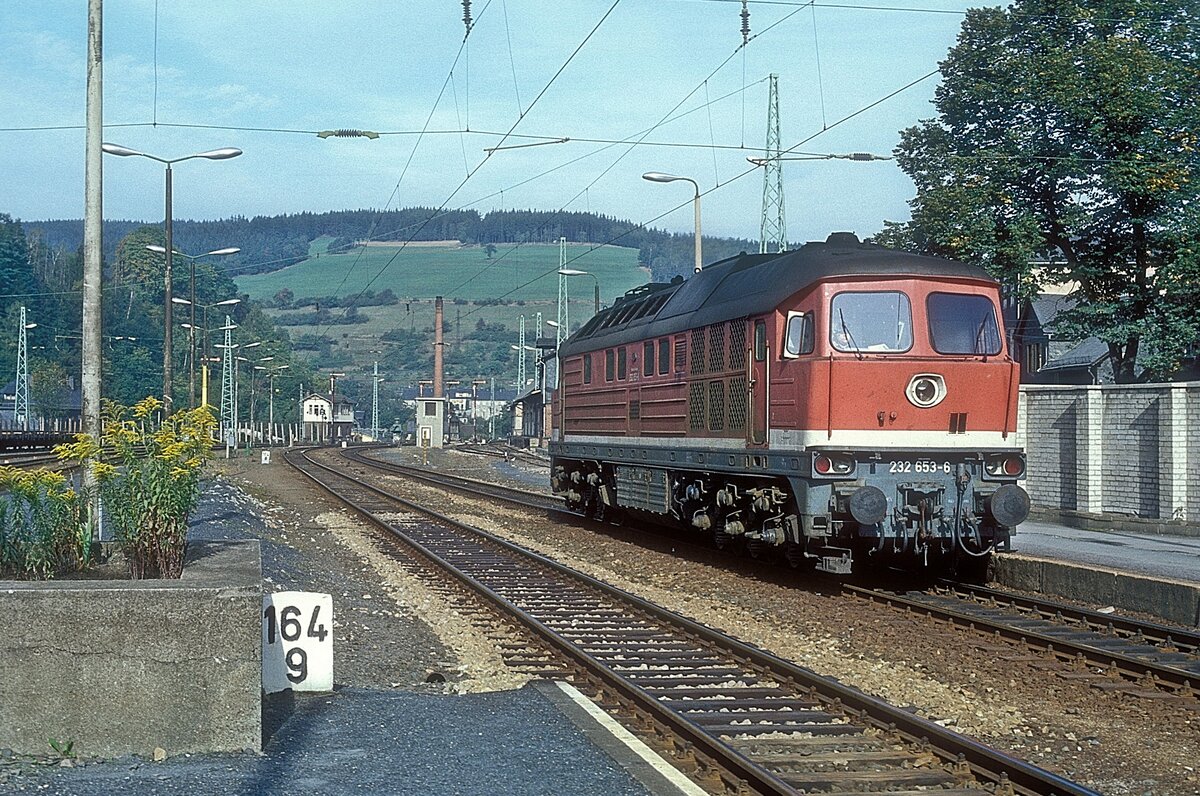Dieser Blick war in den letzten Wochen häufiger in den Medien zu sehen. Am 1.4.1988 ist 213 332 im unversehrten Dernau in Richtung Remagen unterwegs. Man beachte auch die zweistelligen Benzinpreise (in DM !) an der Tankstelle !
