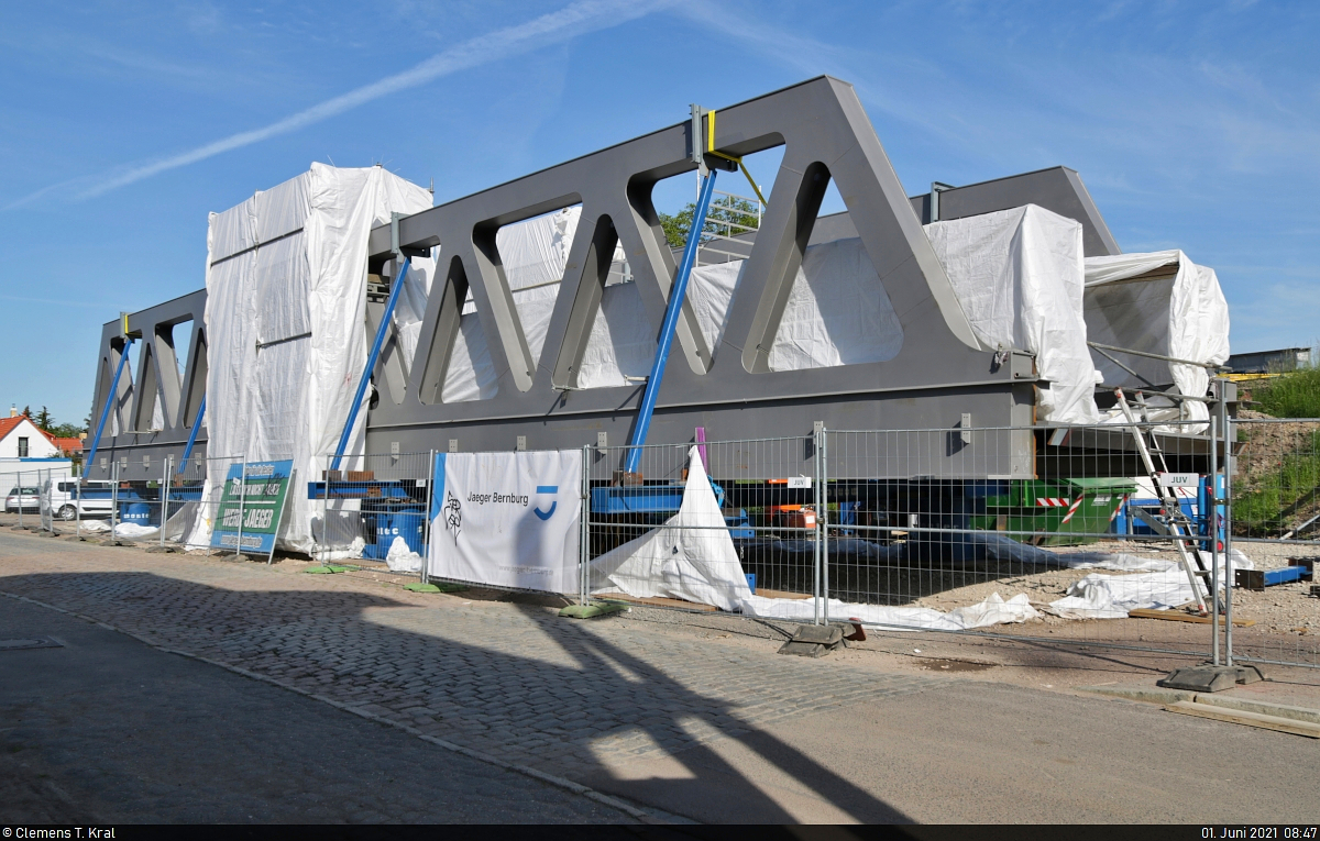 Wegen der Großbaustelle in Halle (Saale) gibt es - abgesehen von der Bedienung von Anschlüssen - in diesem Jahr hier keinen Güterverkehr. Insofern nimmt man an markanten Standorten auch mal den einen oder anderen Abellio-Hamster mit.