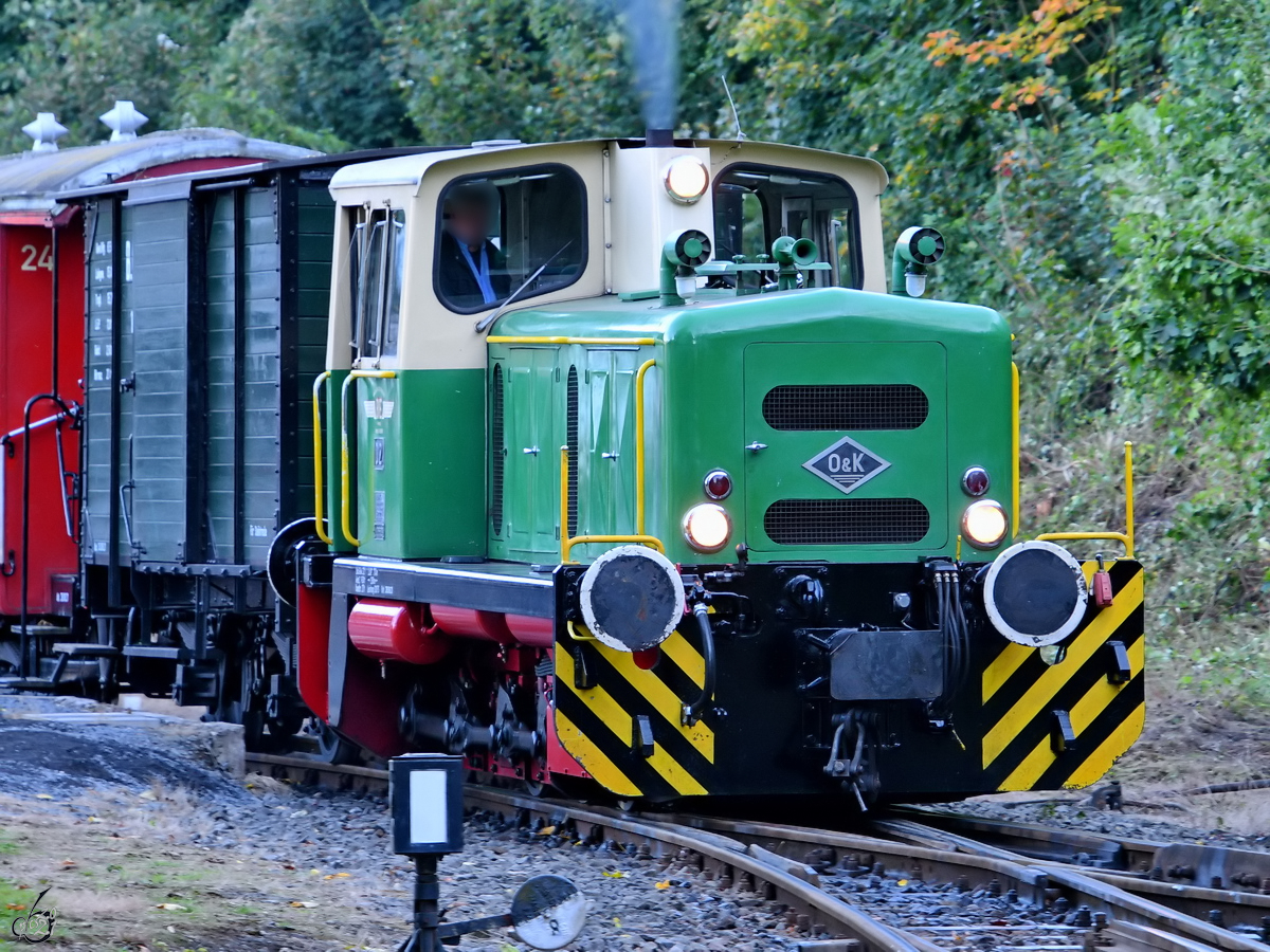 Während der Veranstaltung  120 Jahre Brohltalbahn  waren verschiedene Lokomotiven - wie zum Beispiel die D2 im Einsatz. (Brohl-Lützing, Oktober 2021)