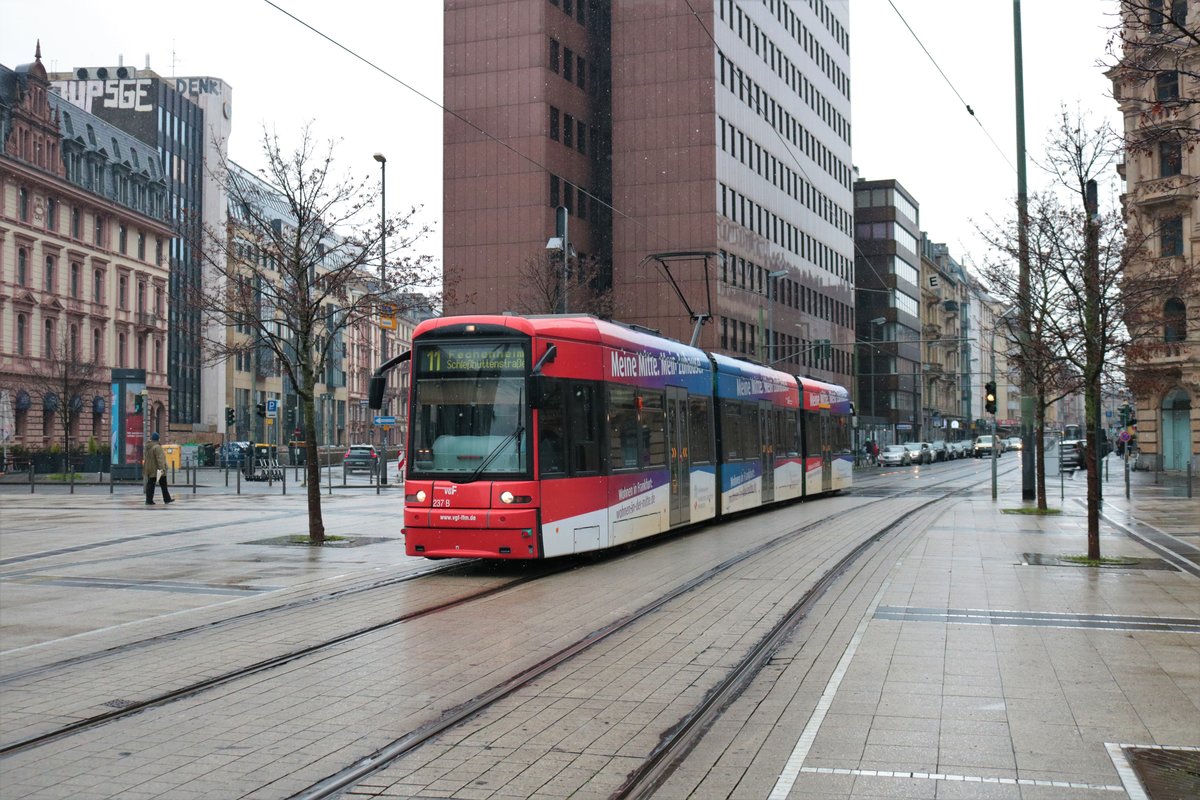 VGF Bombardier Flexity Classic S-Wagen 237 am 30.01.21 in Frankfurt am Main Willy Brandt Platz