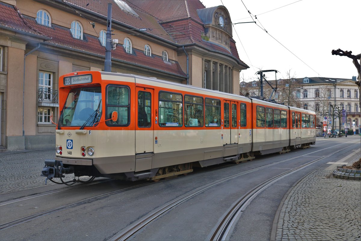 VGF Düwag Pt Wagen 148 am 22.02.21 in Frankfurt Südbahnhof
