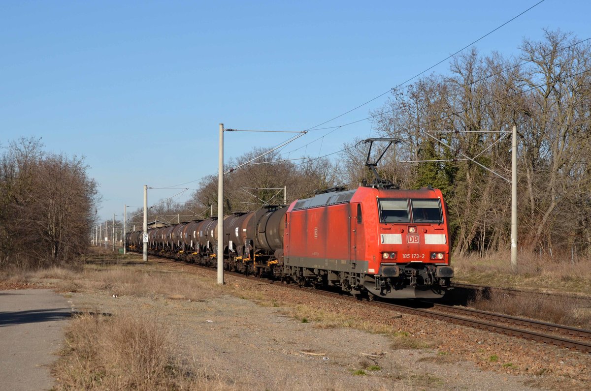 Im Dienste der Infra Leuna schleppte 482 041 am 21.02.21 einen Gaskesselwagenzug durch Raguhn Richtung Bitterfeld. Der Zug kam aus Wittenberg-Piesteritz und hatte Großkorbetha als Ziel.