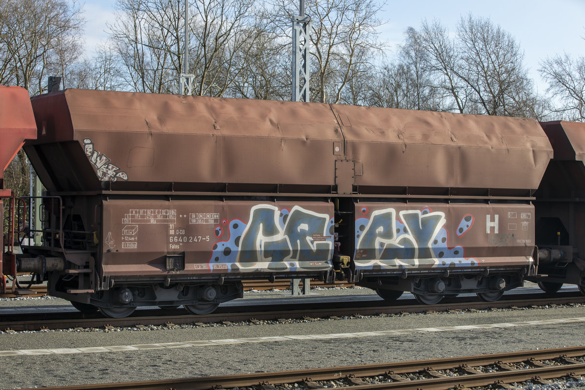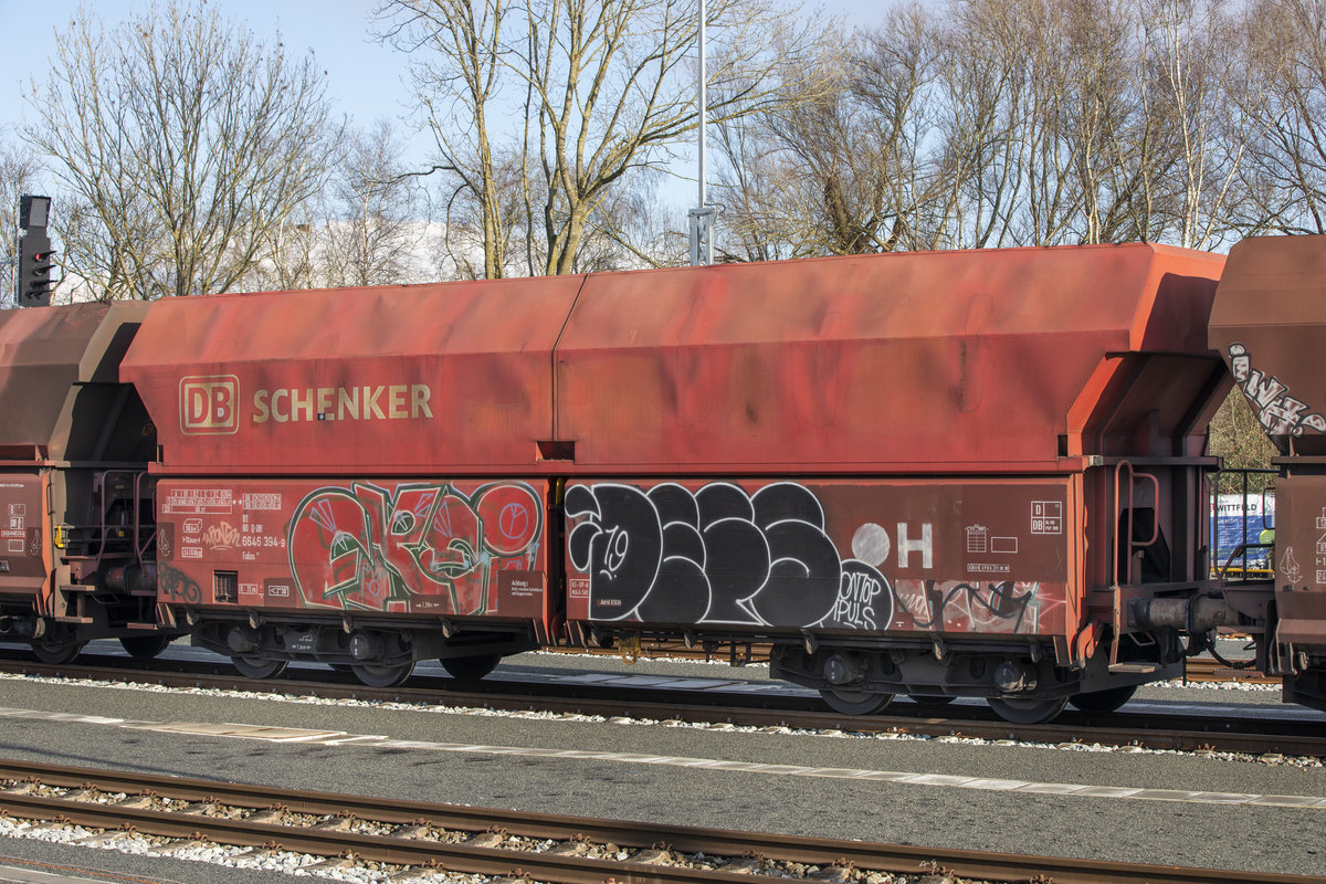 25. Januar 2021 - Schnellentladewagen Falns in den Farben von DB Schenker im Bahnhof Sande
