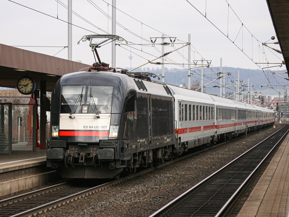 Am 13.03.2016 konnte ich ES 64 U2 - 007 mit dem IC 2083 "Königsee" in Göttingen aufnehmen. Am Zugschluss befand sich ES 64 U2 - 021 "Deutsch Ungarisches Freundschaftsjahr 2015".