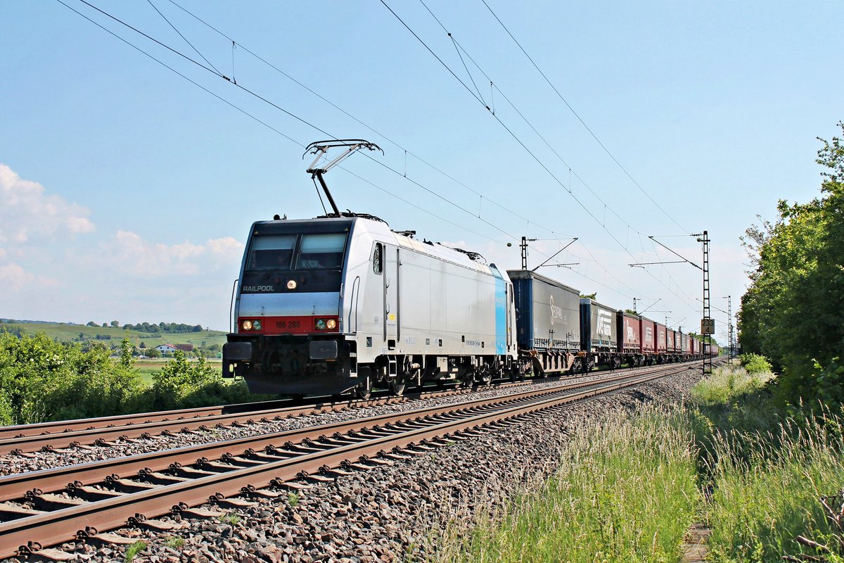 Am späten Nachmittag des 19.05.2020 fuhr Rpool/XRAIL 186 288 mit dem  SREDIRAIL/MAGETRA -KLV, welchen sie von Basel SBB RB bis Aachen West bespannte, nördlich von Hügelheim über die Rheintalbahn in Richtung Freiburg (Breisgau).