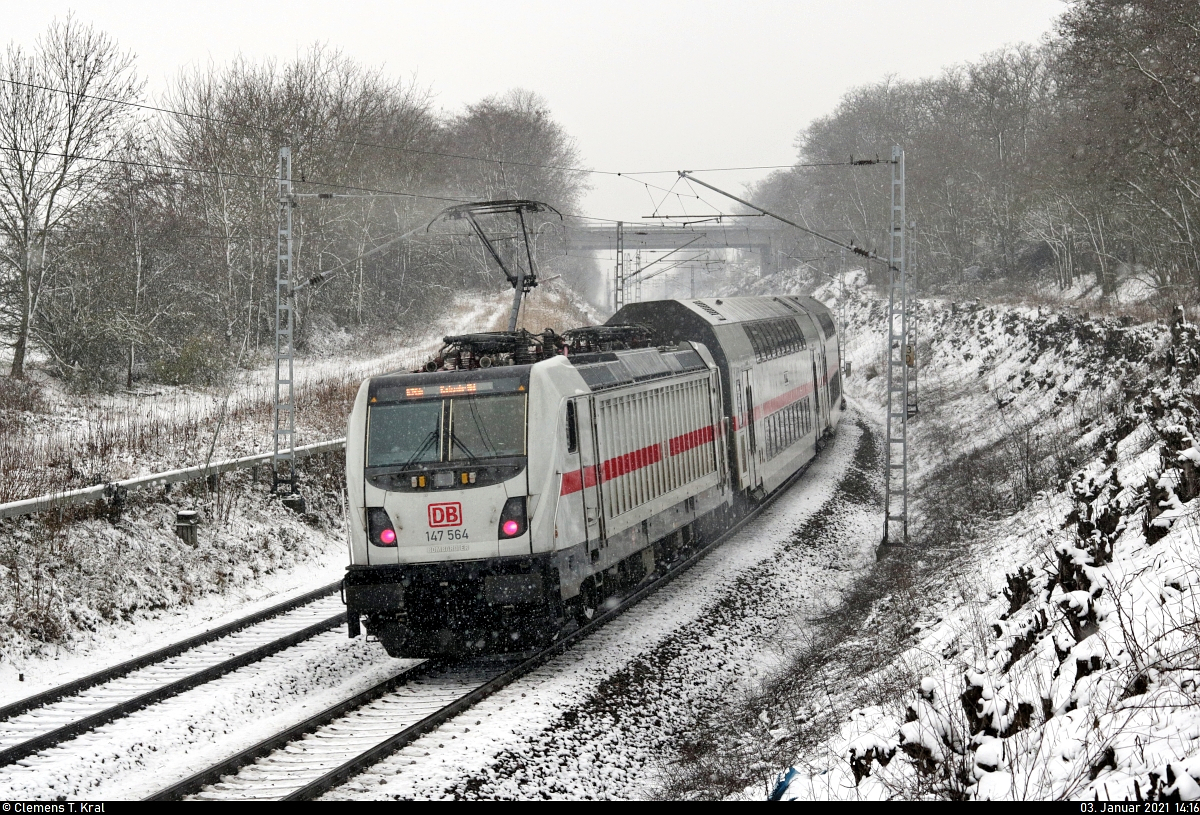Tz "Siegen" brachte mich ohne Umstieg von Köln nach Murnau. Auf der Rückfahrt konnte ich den Triebzug als ICE 528 (Garmisch-Partenkirchen - Dortmund) bei Eschenlohe bildlich festhalten. Eschenlohe, 16. Januar 2021