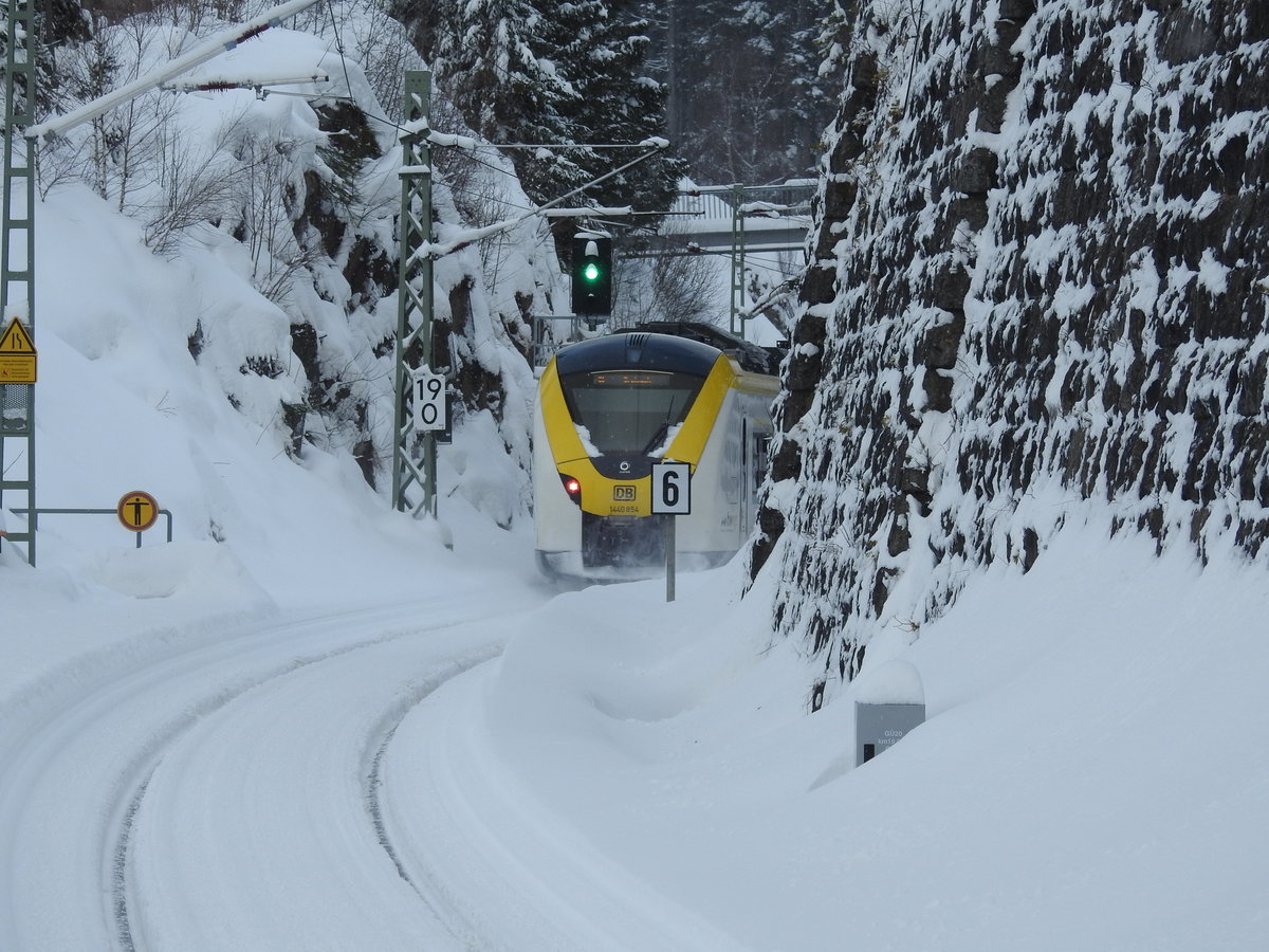 Triebwagen 1440 222 nach Aachen am 25.01.2021 in Mönchengladbach.