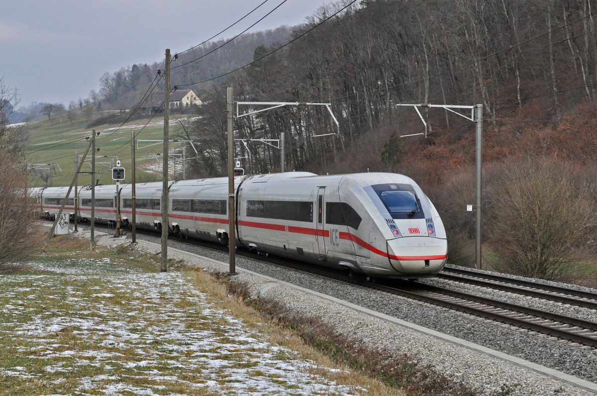 Der blaue ICE 406 001-8 Tz 4601 ,,Europa/Europe'' am 24.01.2021 in Boisheim auf dem Weg nach Amsterdam