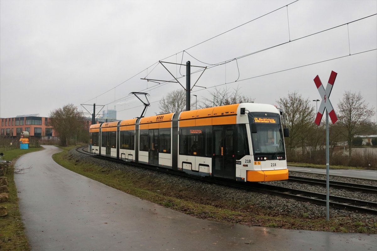 Mainzer Mobilität Stadler Variobahn 218 am 23.01.21 am Lerchenberg als Linie 53