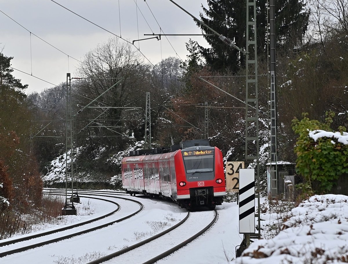 Nachschuß auf eine S1 nach Osterburken die gerade Neckargerach gen Binau verlässt. Es handelt 425 760 auf den der Blick fällt. 26.1.2021