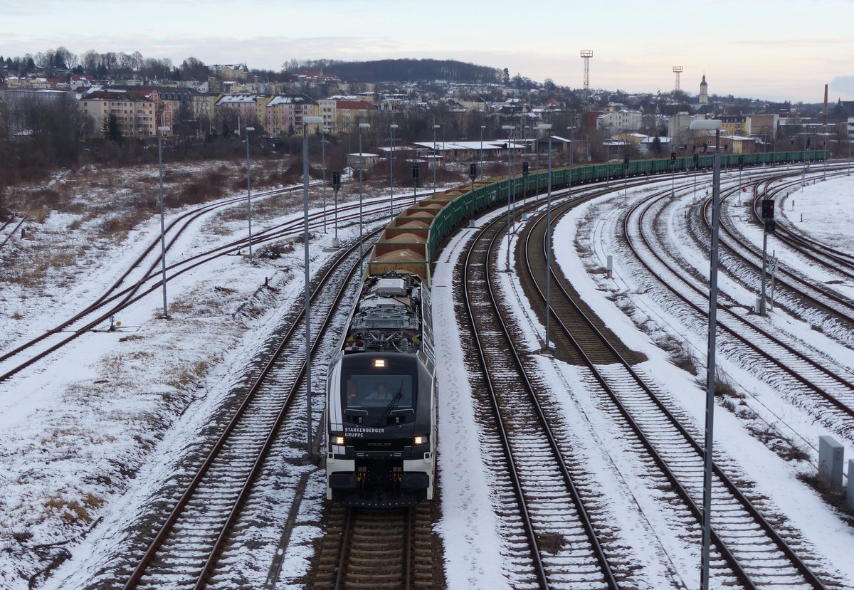 Stadler Eurodual 159 212-0 ( 9080 2159 212-0 D-RCM ), abfahrbereit mit einem starkenberger Sandzug in Gera am 26.1.2021