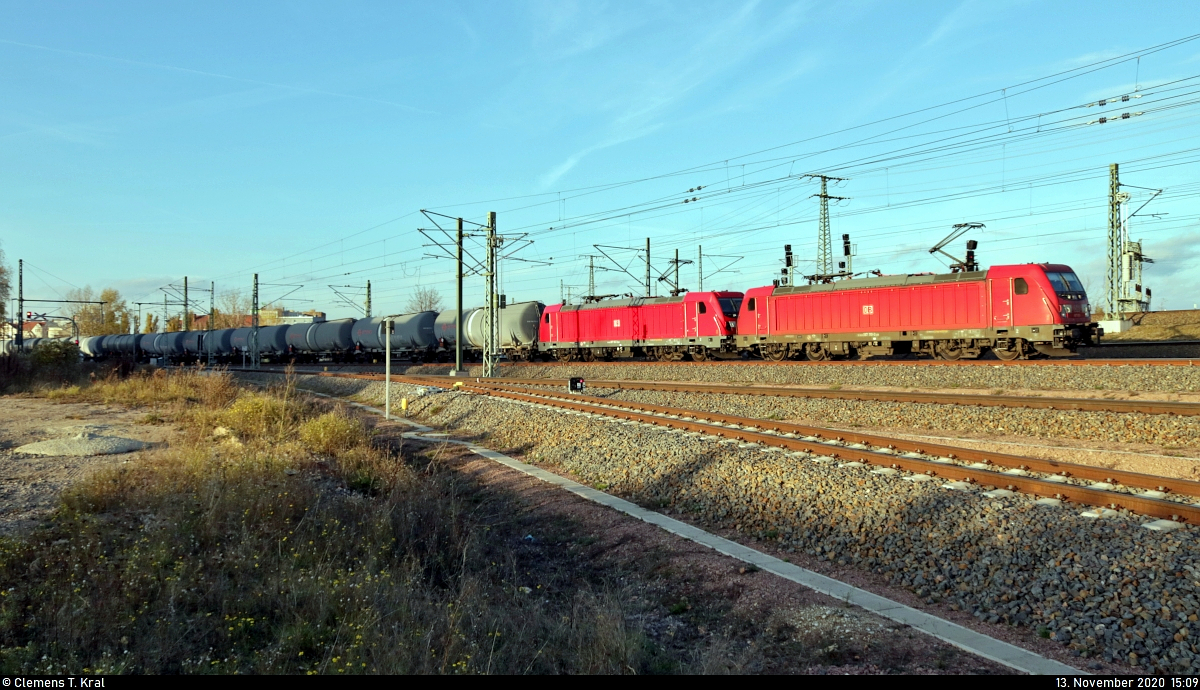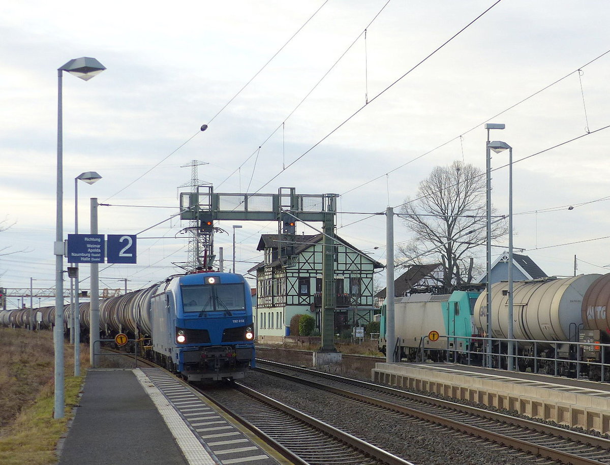 LEG 192 018 mit Kesselwagen Richtung Weimar, am 21.12.2020 in Vieselbach.