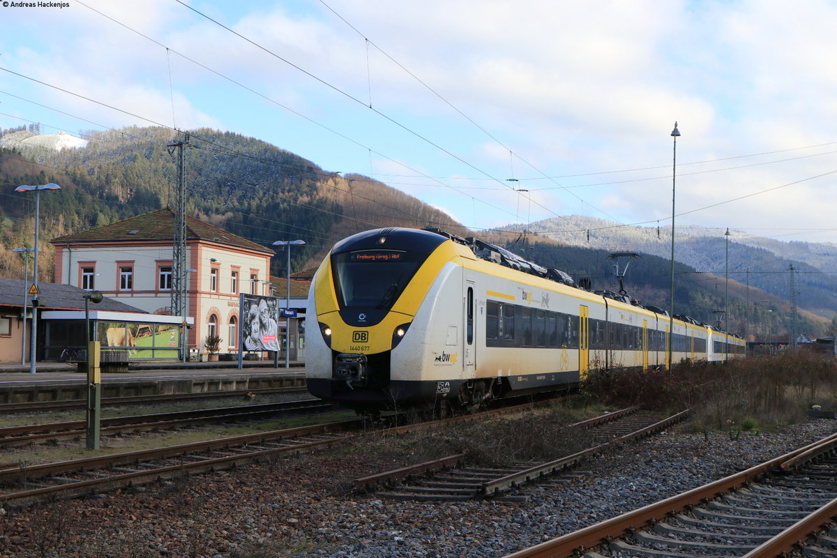 1440 177 "Löffingen" und 1440 183 als Lt 70680 (Villingen(Schwarzw)-Freiburg(Brsg)Hbf) in Hausach 10.1.21