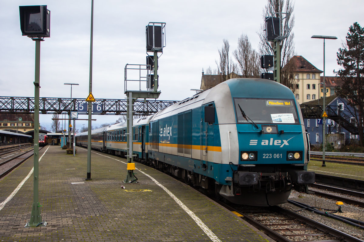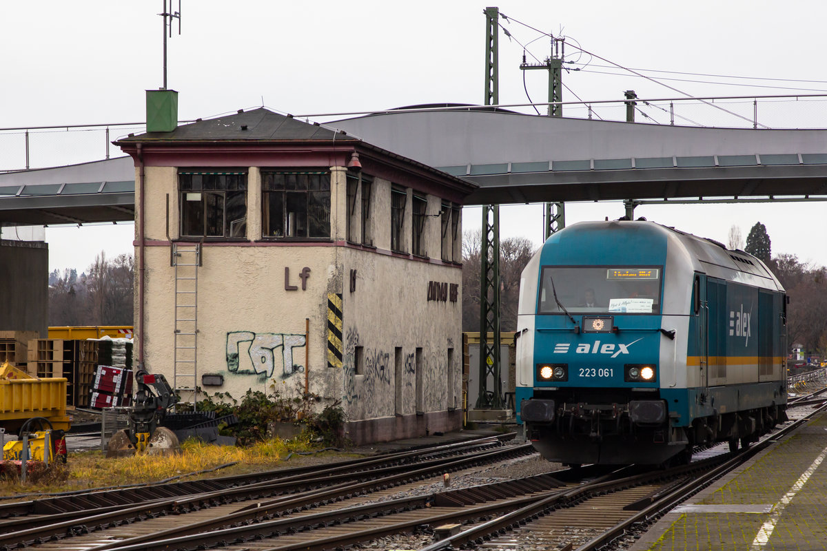 Das letzte Mal das ich ein Bild von einem Alex in Lindau gemacht habe und das letzte Bild welches ich hier von einem Alex aus Lindau und der Allgäubahn hochgeladen habe. 223 061 steht mit Abschiedsschild und Trauerflur für ihre letzte Fahrt von Lindau Hbf nach München Hbf am 12.12.20 bereit.