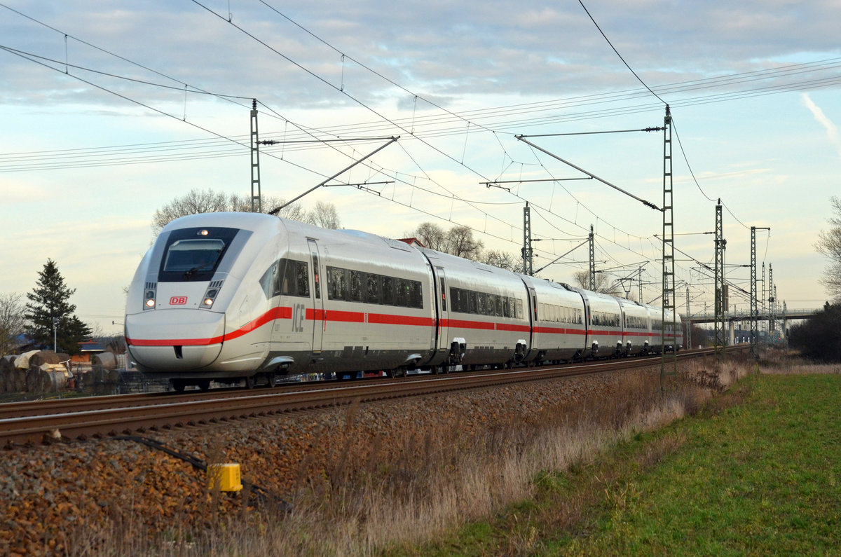 Dieser ICE-T der Reihe 411 rollte am 20.12.20 auf dem Gegengleis als Leerreisezug durch Gräfenhainichen Richtung Bitterfeld. Er machte das Regelgleis für den nachfolgenden ICE 507 frei.