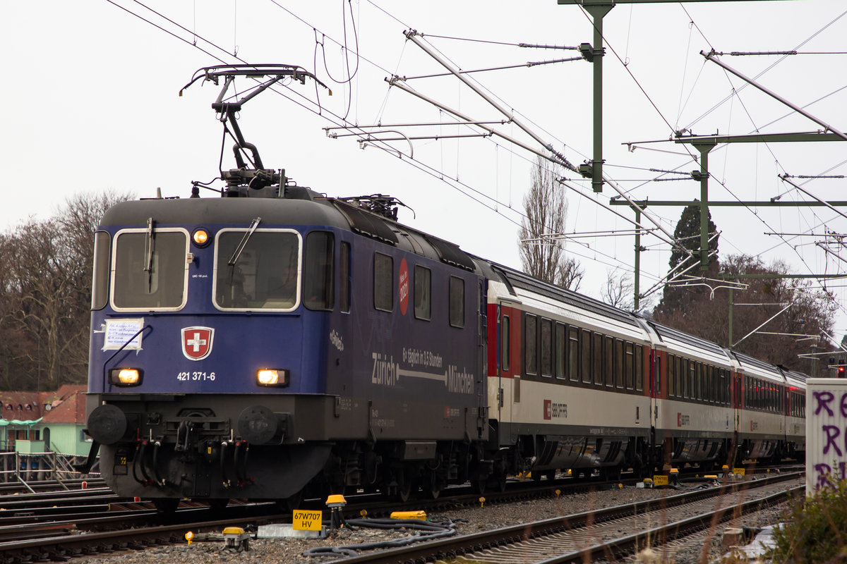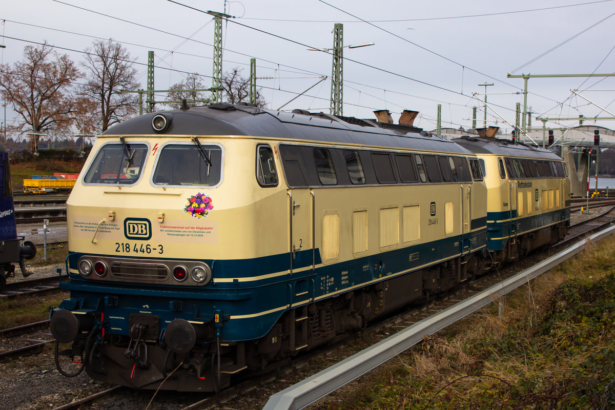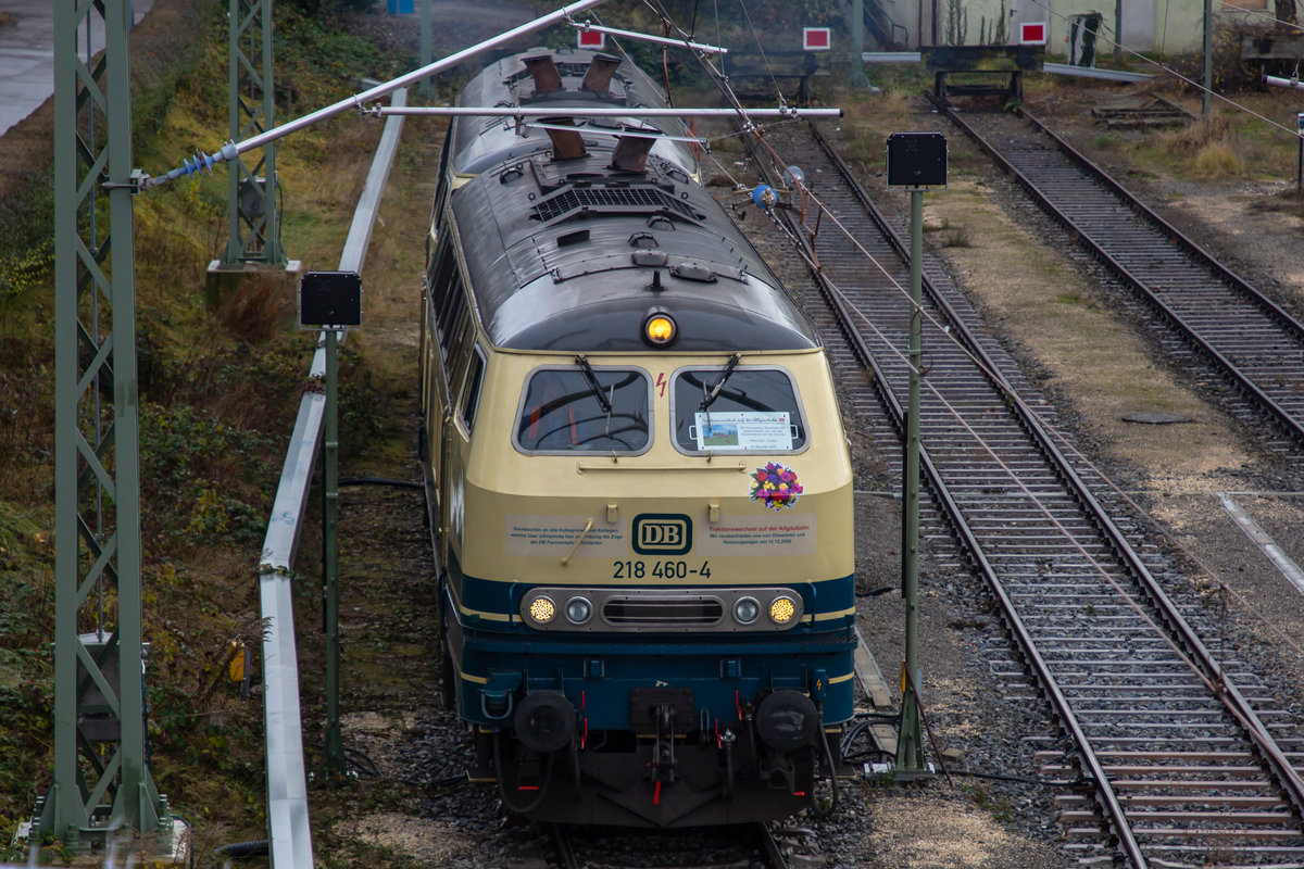 Am Morgen des 12.12.20 haben 218 446 und 460 den EC EuroCity 196 aus München nach Lindau gezogen. Nun warten sie bei leichtem Sonnenschein Lindau auf den Einsatz am EC 195