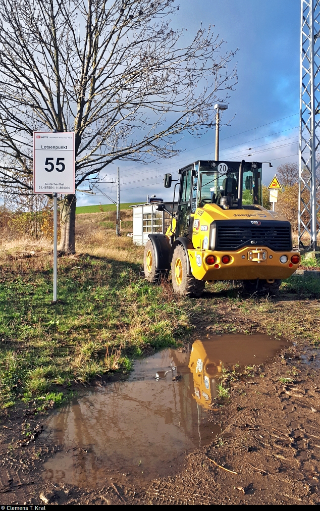 Auch in Zscherben wurde schon etwa zwei Monate vor Beginn der großen Bauarbeiten fleißig gebuddelt. Hier werden v.a. Kabel verlegt sowie Mastgründungen für Signale und Oberleitung vorgenommen.