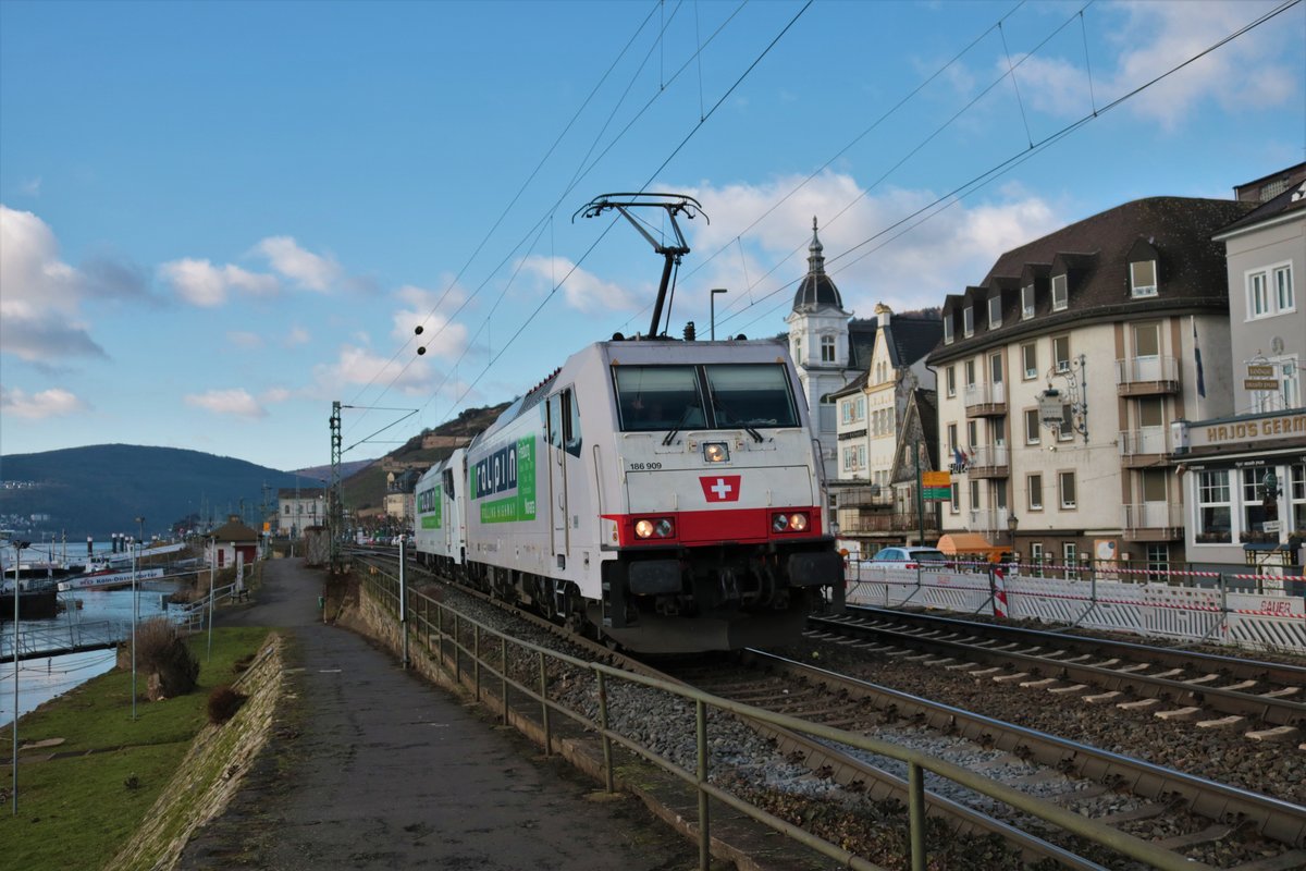 BLS Cargo Bombardier Traxx 186 909- 4 und 186 901-5 in Rüdesheim am Rhein am 09.01.21
