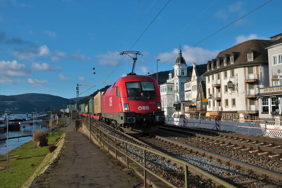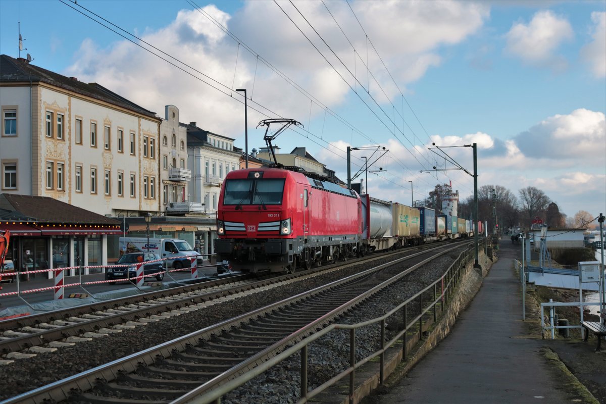 DB Cargo Siemens Vectron 193 311-8 mit KLV in Rüdesheim am Rhein am 09.01.21