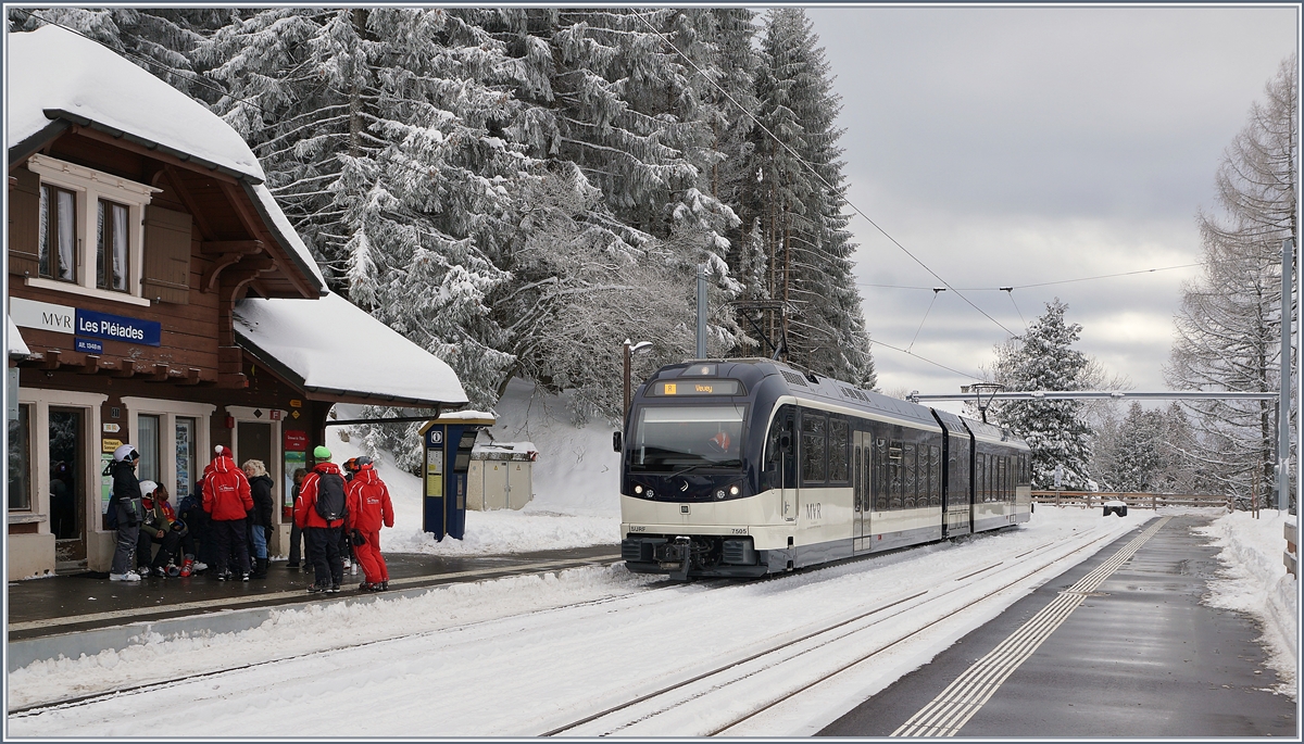 Der CEV MVR ABeh 2/6 7505 steht im Bahnhof von Les Pléiades zur Rückfahrt nach Vevey bereit.