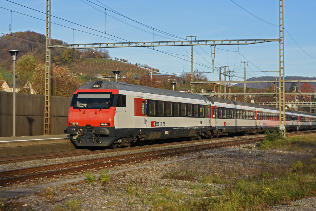 Re 620 009-1 durchfährt den Bahnhof Gelterkinden. Die Aufnahme stammt vom 13.11.2020.