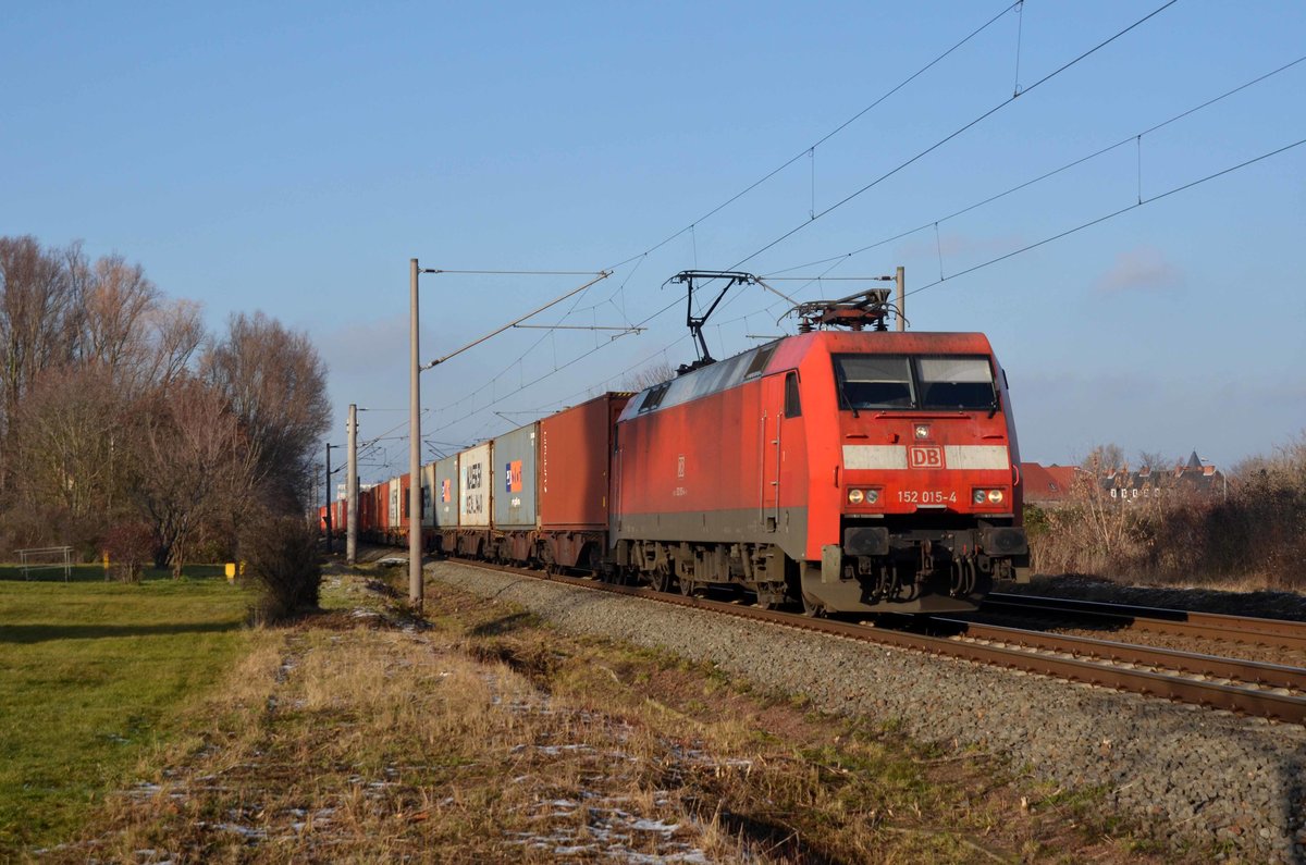 152 015 führte am 10.01.21 einen Containerzug durch Greppin Richtung Bitterfeld.