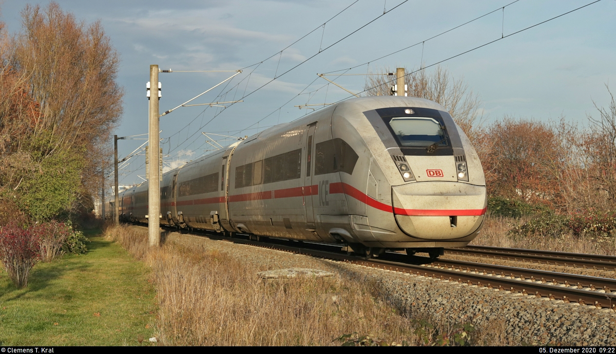 Nachschuss auf 808 015-2  Bitterfeld-Wolfen , als dieser am späten Nachmittag des 03.05.2020 südlich von Buggingen als ICE 376 (Basel Bad Bf - Frankfurt (Main) Hbf) über die Rheintalbahn durchs Markgräflerland in Richtung Freiburg (Breisgau) fuhr.