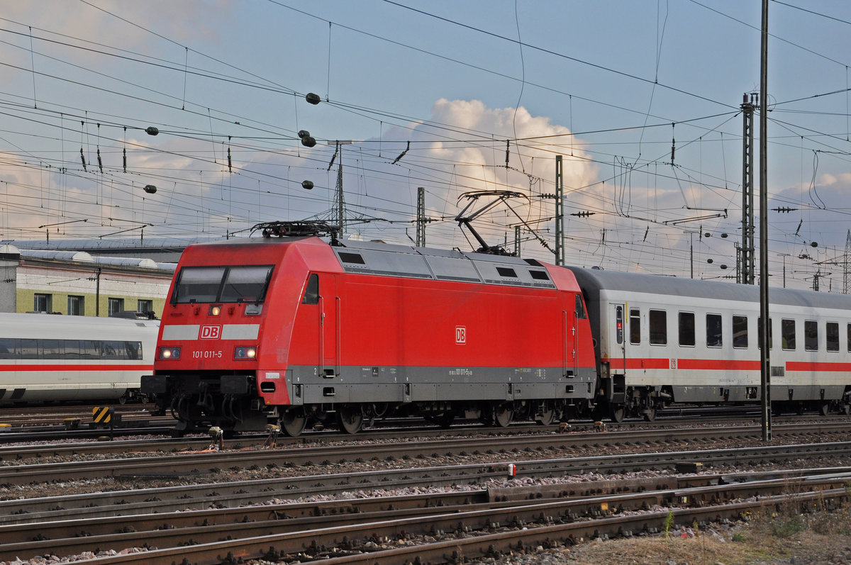 DB Lok 101 011-5 verlässt den badischen Bahnhof. Die Aufnahme stammt vom 08.01.2021.