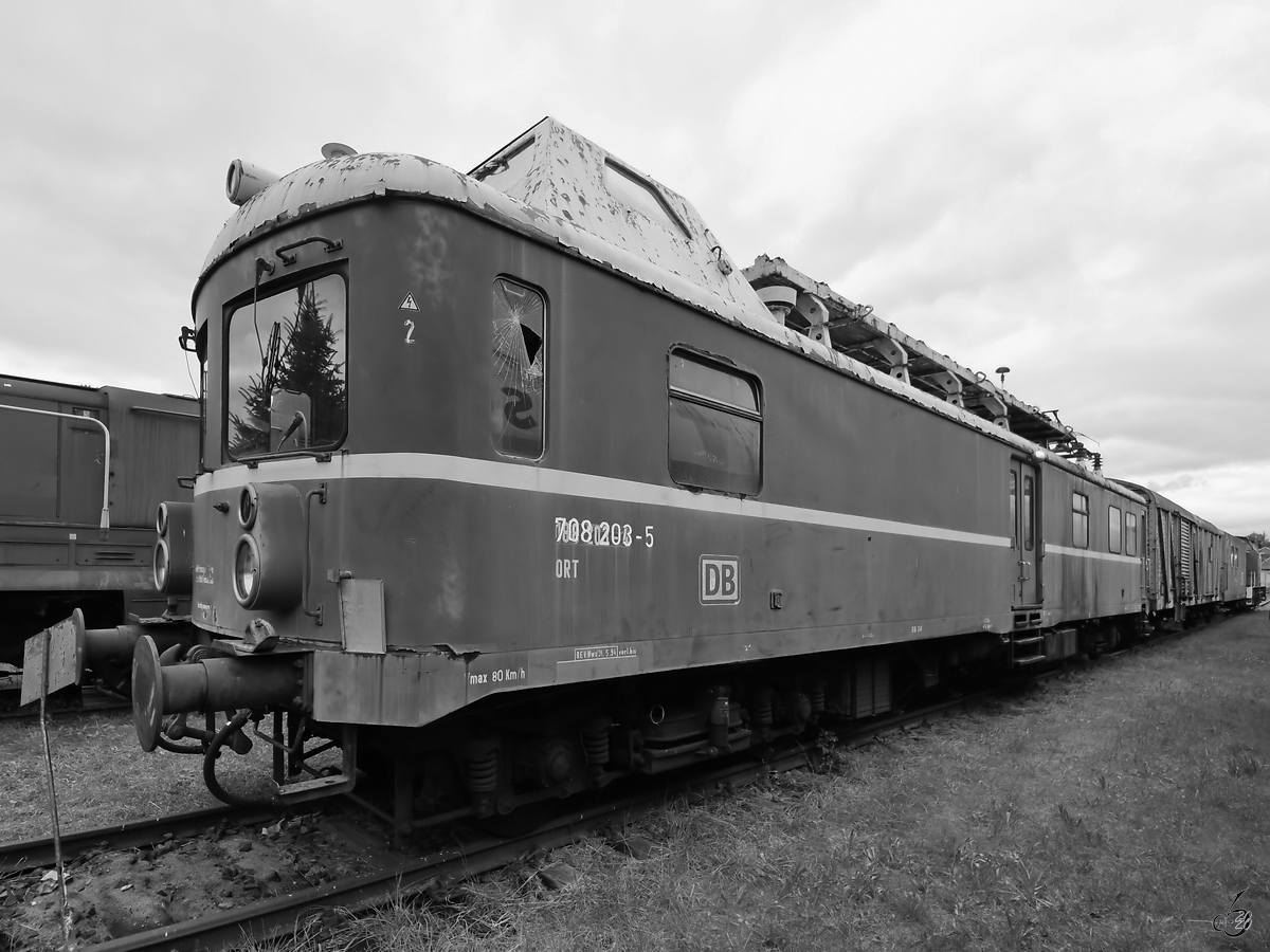Der Oberleitungsrevisionstriebwagen 708 203-5 war im September 2020 im Sächsischen Eisenbahnmuseum Chemnitz-Hilbersdorf abgestellt.