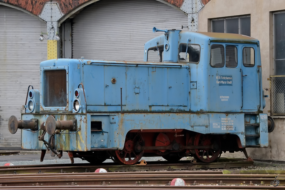 Die ursprünglich an die VEB Fettchemie Karl-Marx-Stadt ausgelieferte Diesellokomotive LKM V22 (262.6.670) aus dem Jahr 1970 steht jetzt im Sächsischen Eisenbahnmuseum Chemnitz-Hilbersdorf. (September 2020)