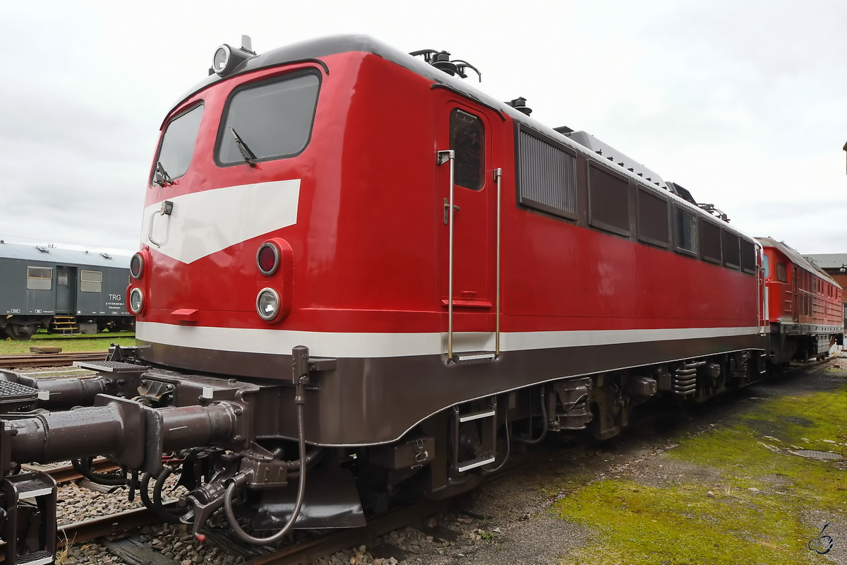 Diese wohl frisch lackierte Elektrolokomotive war leider (noch) ohne Beschriftung. (Sächsisches Eisenbahnmuseum Chemnitz-Hilbersdorf, September 2020)